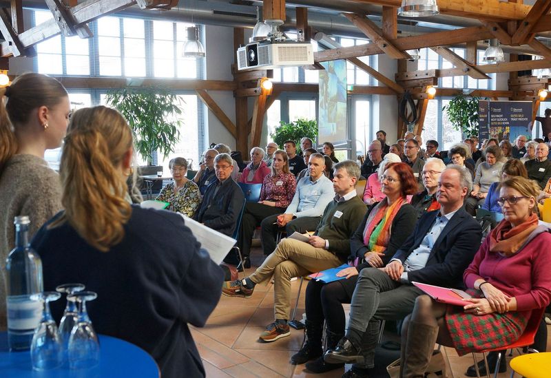 Dass sich besonders junge Leute um die Zukunft der Menschheit Sorgen machen, verdeutlichten authentisch Schülerinnen und Schüler der christlichen Jona-Schule aus Stralsund. Sie hatten auf dem Fachtag ins Thema eingeführt und moderierten ebenso ein Podium mit Prof. Rahmstorf und weiteren Experten aus Kirche, Theologie und Wirtschaft. Auf die Frage, wie die Kirchengemeinden wohl in 20 oder 30 Jahren den Klimaschutz umsetzen, antwortete die Fachrunde: mit Wärmepumpe im Pfarrhaus, Photovoltaikanlage nach Möglichkeit auch auf dem Kirchendach, eventuell einer oder mehreren Windkraftanlagen auf dem Kirchenacker und einer multifunktionalen Nutzung aller Gebäude durch Kirche und andere, wie die Kommune oder Vereine.