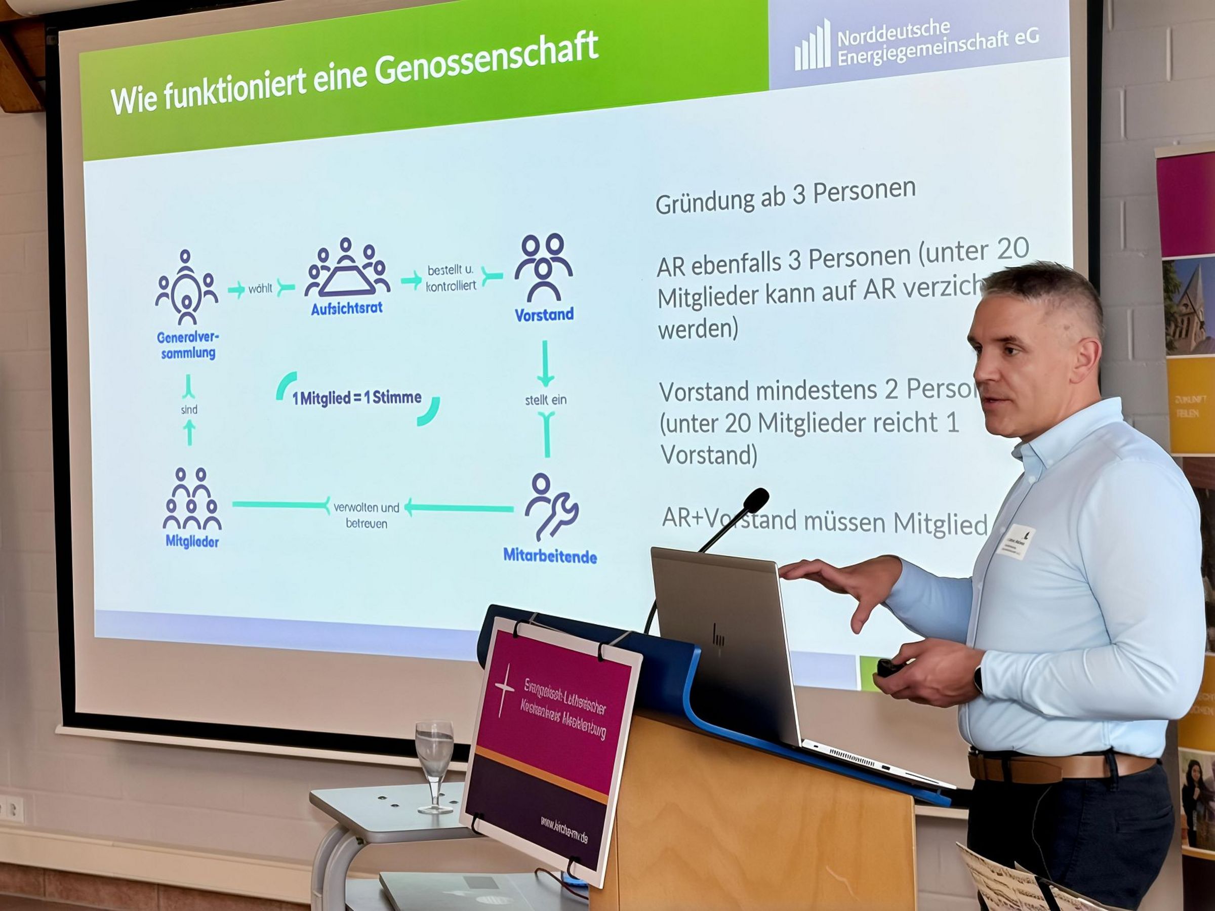 Das Kirchliche EnergieWerk (KEW), so der Geschäftsführer, setze sich im Auftrag des Kirchenkreises Mecklenburg für die Umsetzung des Klimaschutzes innerhalb der Kirche durch Beratung sowie unter anderem die Betreibung von Windkraft- und Photovoltaikanlagen auf Kirchenland ein. Daher stand – wie sich Kirchengemeinden in christlicher Verantwortung sowohl für die Bewahrung der Schöpfung engagieren als auch ein Mehr an Einnahmen erwirtschaften können – im Mittelpunkt des Klimatages, der auch den von der mecklenburgischen Synode bereits im Frühjahr 2021 beschlossenen Klimaschutzplan 2030 befördern sollte.