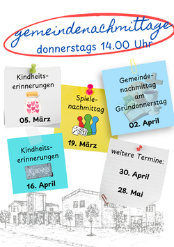 VeranstaltungGemeindenachmittag - Kindheitserinnerungen 05.03.2026 · 14:00 Uhr · 15:00 Uhr FriedenskircheSemmelweisstraße 5017036 Neubrandenburg Leitung Eberhard Hahnke Im Kalender speichern (.ics) Route berechnen zurück zur Übersicht der Veranstaltungen StartseiteGottesdiensteVeranstaltungenKinder und JugendGeschichteLINKSKontakt und MitarbeitendeAnmelden