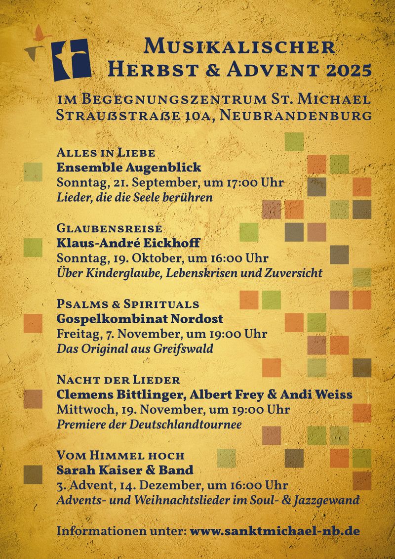 Der Herbst und Advent bietet einige musikalische Höhepunkte im Begegnungszentrum.