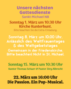 Bitte beachten Sie: Heute kein GD in Sankt Michael. Gottesdienst gemeinsam in der Friedenskirche.
