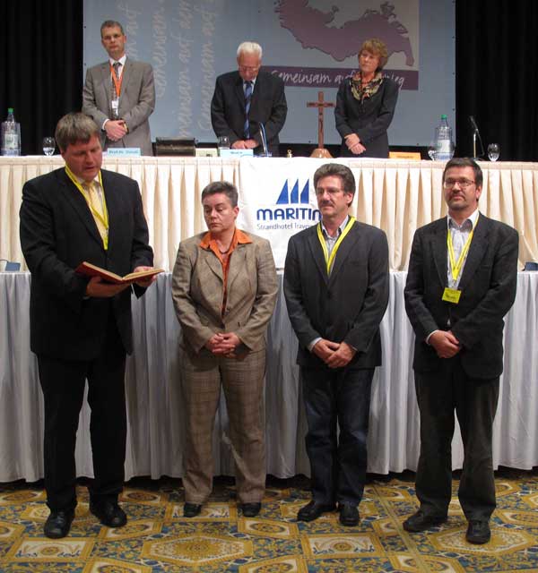 Und in Pommern verpflichtet Präses Dr. Rainer Dally die Synodalen, die noch nicht an einer Landessynode teilgenommen haben