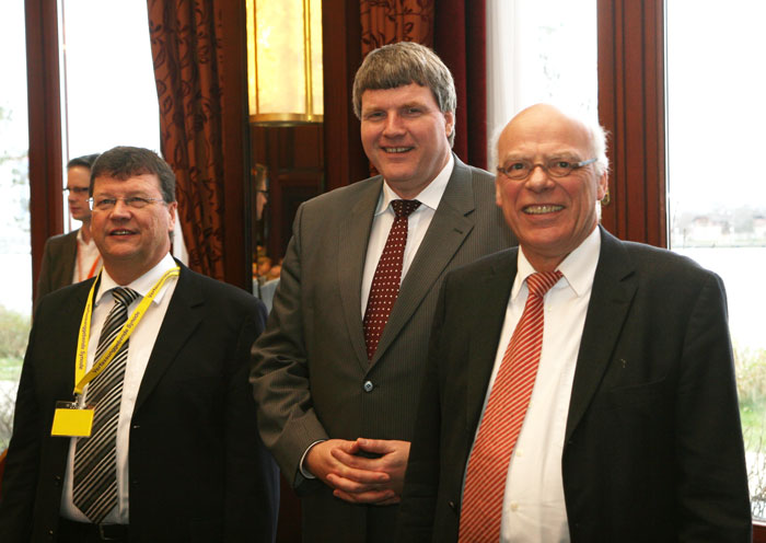 OKR Dr. Christoph Ehricht (Greifswald) mit Ramona Thurow vom Greifswalder Konsistorium und Martin Maercker vom Schweriner Oberkirchenrat