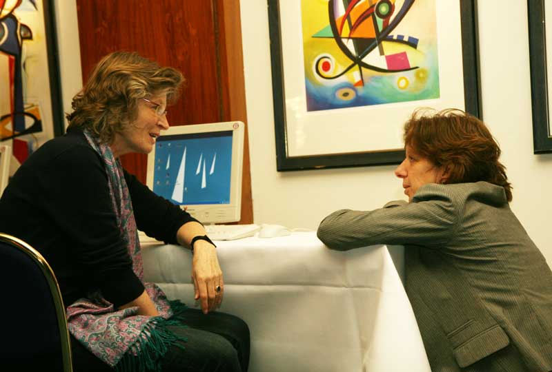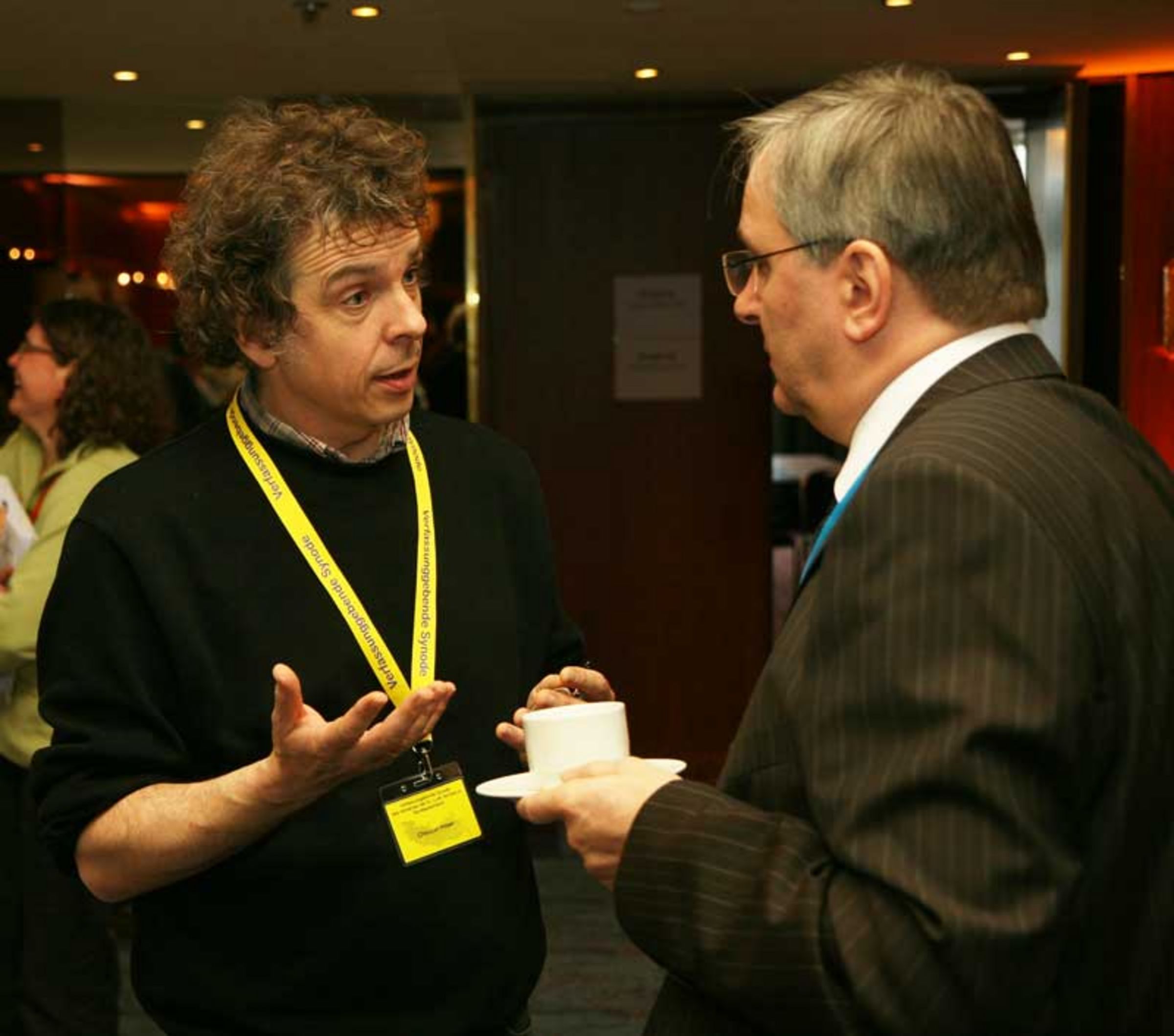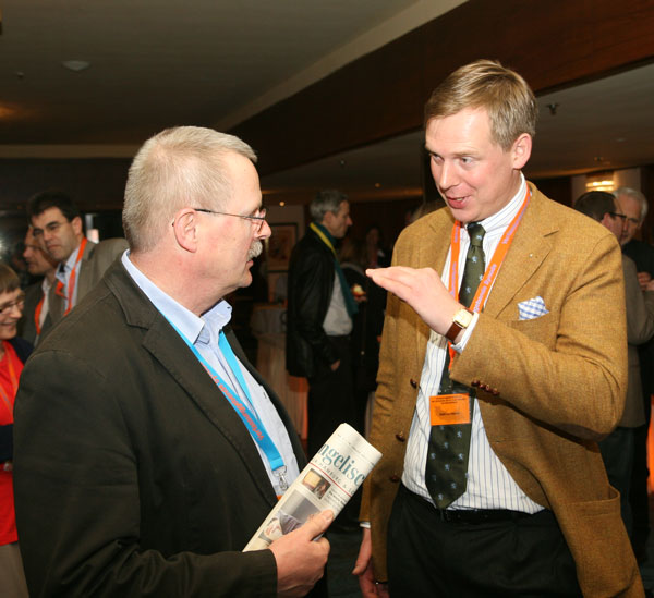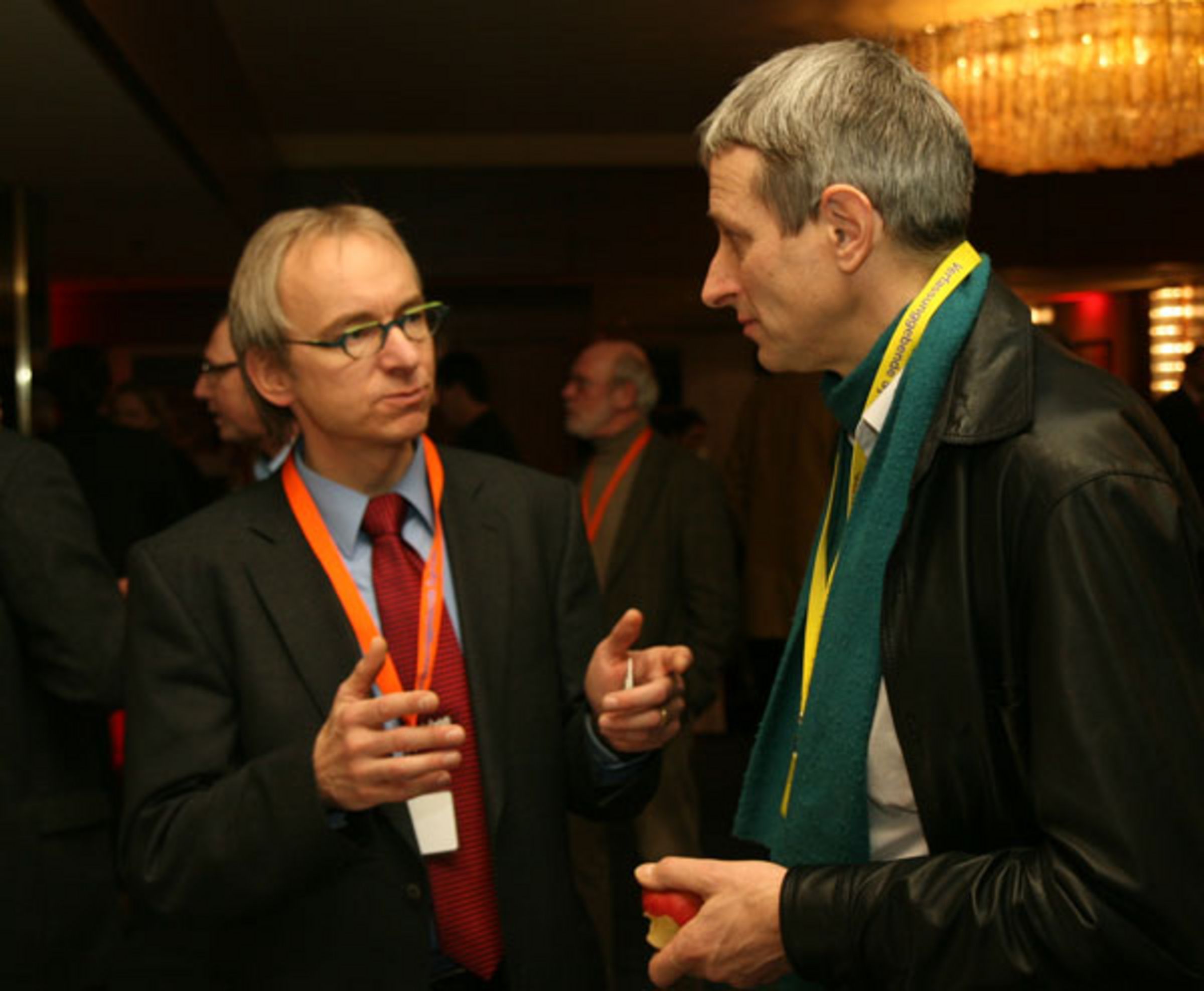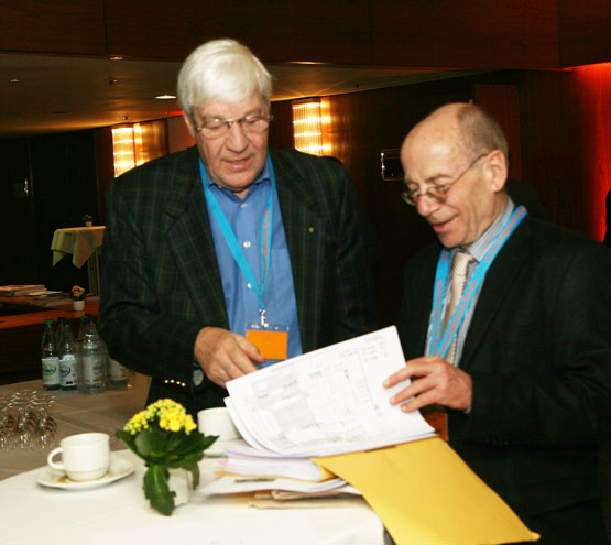 Dr. Dietmar Freitag sucht mit OKR Dr. Christoph Ehricht auf dem Lageplan nach dem Ort der Gruppenarbeit