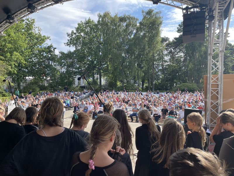 Mit 55 Kindern fuhren wir eine knappe Woche nach Wismar in die Jugendherberge. Zum ersten Mal sind wir mit allen Kolleg:innen aus der Kirchenregion Bad Doberan unterwegs gewesen. Dazu gehörten 9 Kirchengemeinden, 3 Kantoren und 5 Gemeindepädagog:innen. In Wismar haben die Kinder dann in verschiedenen Gruppen gesungen, gebastelt, geschauspielert. Am Ende der Woche konnte sich das Resultat sehen lassen. Die Kinder haben einen wunderbaren Auftritt im Kühlungsborner Konzertgarten gehabt. Das Wetter hat mitgespielt und viele Besucher:innen haben sich das Ereignis angschaut. Zum Abschluss der Freizeit konnten wir in viele strahlende Gesichter sehen.