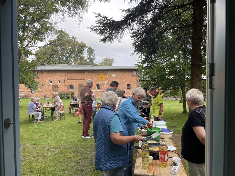 Am 9. September wurde zum ersten Mal nach Jahren wieder ein Kartoffelpufferfest gefeiert. In der Vergangenheit hatten das die Senioren aus Stäbelow und Parkentin als jährliches Großereignis. Jetzt wurde die Idee wieder aufgegriffen, aber Wunsch war es, einen kleineren Kreis zu haben und nur für die Seniorenkreise zusammen zu kommen. Es war ein gelungener Tag, alle haben was mitgebracht, jeder hat mit angepackt beim Auf- und Abbau und es gab schöne Erzählrunden an den Tischen. Es war ein wundervolles fröhliches Fest, das nach Wiederholung ruft.