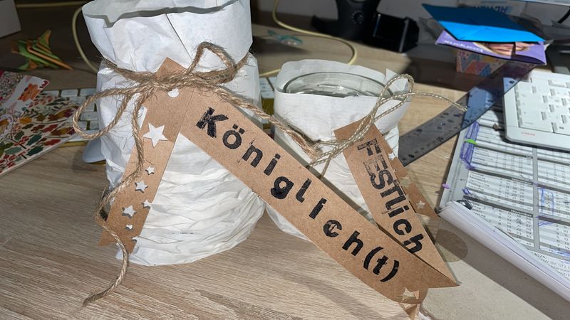 Praktisch haben wir dann aus alten Kerzen neue gemacht, indem wir die Kerzenstummeln kleingeschnitten haben, danach eingeschmolzen und mit Wachsmalstiften eingefärbt. Dann wurden sie in neue Formen gegossen. Am nächsten Tag konnten sich die Kinder noch um ihr Kerzenglas eine Hülle aus Stoff nähen. Sie haben auch Stabkerzen mit Sprüchen verziert, jedes Kind konnte eine für sich selbst gestalten, aber auch jeder machte mindestens 1 Kerze als Geschenk für den Seniorenkreis fertig.