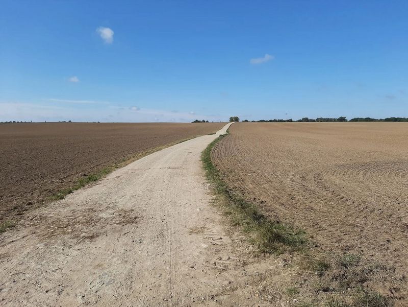 An der Stavener Kirche gehst Du die Straße weiter und biegst nach 500 m rechts ab, überquerst die Bahn und gehst die Teerstraße zu Ende bis sie in einen Landweg übergeht.Nach ca. 3 km läufst Du nach links in Richtung Trafohäuschen, davor befindet sich eine unbedachte Bank mit Tisch.