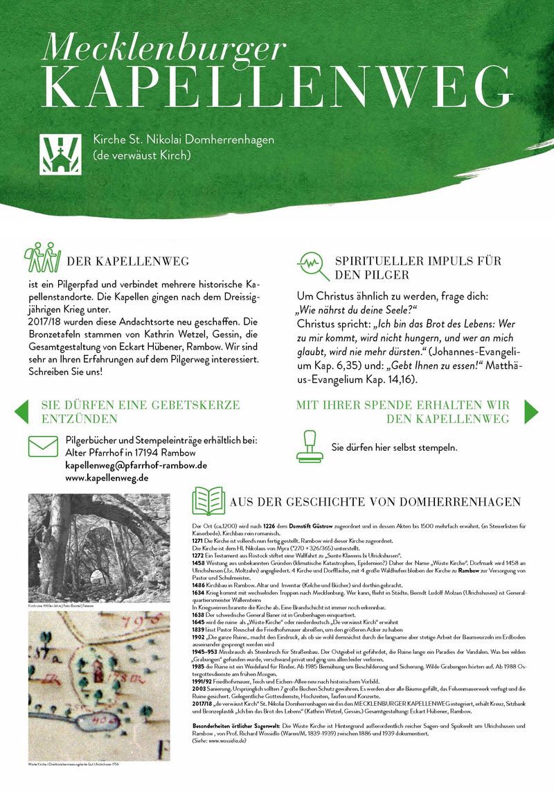 Pilgerwege in MVKapellenweg - Wegbeschreibung