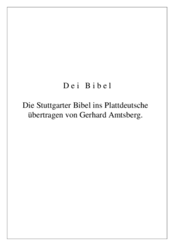 Gerhard Amtsberg lebte viele Jahre als Mediziner in Schwerin und nach seinem Ruhestand im Jahr 2000 hat er das Alte Testament in seine plattdeutsche Muttersprache übertragen. Mehrere Jahre hat er täglich an diesem Projekt gearbeitet. Das Plattdeutsche Kirchliche Zentrum Kirch Stück, das sich der Pflege und Erhaltung der plattdeutschen Verkündigungsarbeit in unserer Kirche verpflichtet weis, stellt diese Übertragung der alttestamentlichen Bücher als online-Angebot für die kirchliche Arbeit zur Verfügung. "Einführung in die Laienübertragung des Alten Testaments von Gerhard Amtsberg" (PDF)