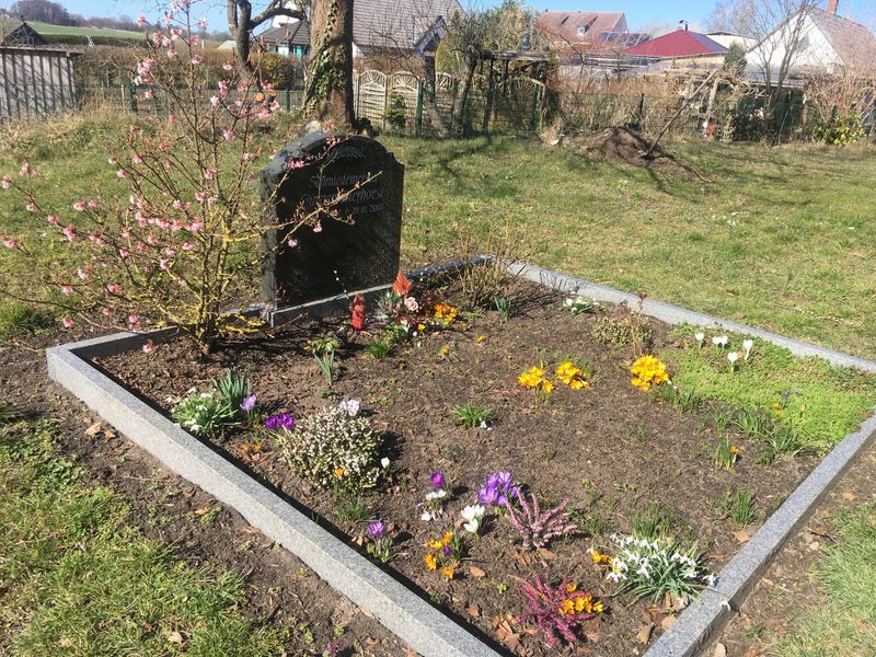 Das Nutzungsrecht für ein Rasen-Wahlgrab kostet 600 Euro zzgl. 200,00 Euro Friedhofsunterhaltungsgebühr für 20 Jahre. Hier besteht die Wahl, ob man eine kleine Fläche um den Grabstein pflegen möchte oder der Grabstein ausschließlich von Rasen umgeben ist. Die Ruhezeit beträgt 20 Jahre.