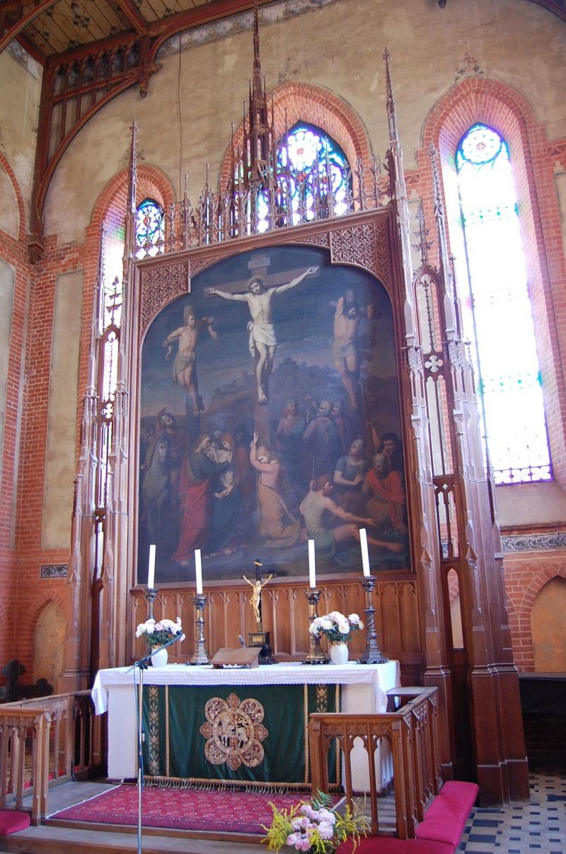 Der frisch sanierte Innenraum lässt die Kirche wieder freundlich hell erstrahlen. Die hohen gotischen Fenster sind überwiegend transparent verglast, jedoch am Rand und in den Rosetten in klaren bunten Farben gefasst. Je nach Sonnenstand färben sie Wände oder Gestühl ebenfalls bunt. Manchmal reicht der Abendsonnenstrahl so vom Eingangsportal bis zum Kreuz auf dem Altar.