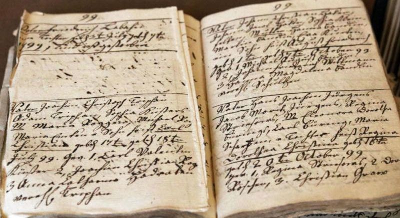 Familienforschungsanfragen können momentan nur schriftlich beantwortet werden. Die bereits digitalisierten Kirchenbücher sind auch über www.archion.de einsehbar.
