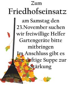 VeranstaltungFriedhofseinsatz 23.11.2024 · 09:00 Uhr · 10:00 Uhr Friedhof Prerow Veranstalter KG Prerow Im Kalender speichern (.ics) zurück zur Übersicht der Veranstaltungen StartseiteGottesdienste und VeranstaltungenAktuellesGruppen und KreiseGemeindebriefeKirchenFördervereineFörderverein Seemannskirche Prerow e.V.Förderverein Fischerkirche Born e. V.Förderverein Schifferkirche Ahrenshoop e.V.FriedhofKontakt und MitarbeitendeAnmelden