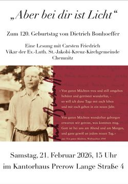 KG Prerow„Aber bei dir ist Licht“ - Zum 120. Geburtstag von Dietrich Bonhoeffer - Eine Lesung mit Carsten Friedrich