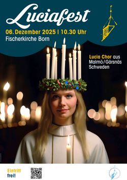 VeranstaltungLuciafest 06.12.2025 · 10:30 Uhr · 11:30 Uhr Fischerkirche Born 18375 Born a. Darß Veranstalter Förderverein Seemannskirche Prerow Im Kalender speichern (.ics) Route berechnen zurück zur Übersicht der Veranstaltungen StartseiteGottesdienste und VeranstaltungenAktuellesGruppen und KreiseGemeindebriefeKirchenFördervereineFörderverein Seemannskirche Prerow e.V.Förderverein Fischerkirche Born e. V.Förderverein Schifferkirche Ahrenshoop e.V.FriedhofKontakt und MitarbeitendeAnmelden