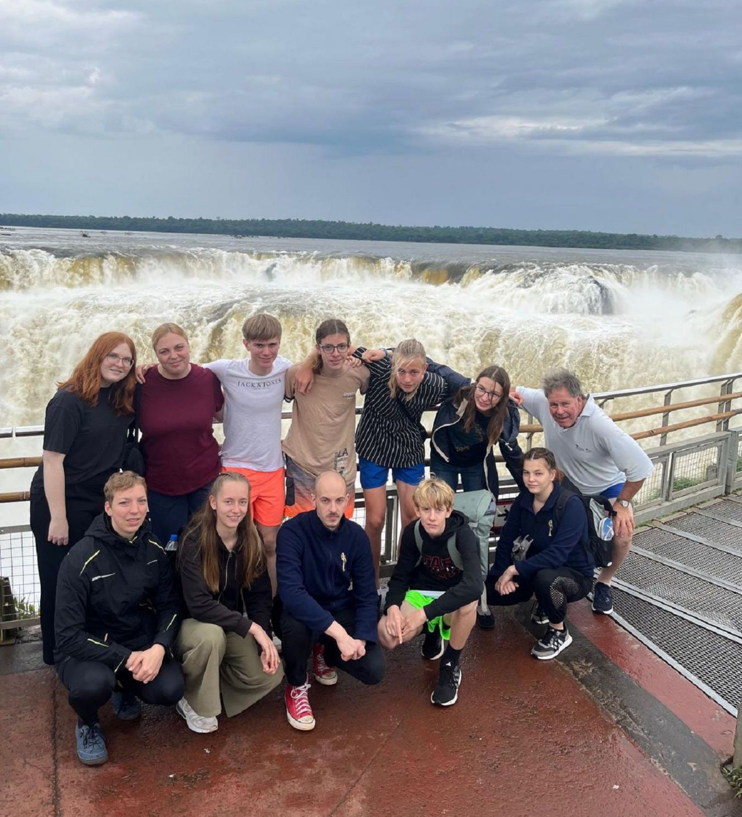 Um 13:00 Uhr kamen wir an und wurden von den Gastfamilien zum Mittagessen empfangen. Es folgte ein Auftritt mit vier Schülern aus unseren Gastfamilien am Colegio Johannes Gutenberg Campo 9. Im Anschluss wurde uns die Schule gezeigt und ihre Schulangebote in den Bereichen Gastronomie und KfZ-Mechatronik vorgestellt. Am Nachmittag konnten wir uns bei unseren Gastfamilie etwas erholen und aßen Abendessen. Anschließend bereiteten wir uns um 18:30 Uhr auf eine Probe mit dem Concierto Sommerfeld vor, gefolgt von einem gemeinsamen Konzert. Den Abend ließen wir mit Gesprächen mit der Gastfamilie ausklingen und fielen müde ins Bett, denn morgen treffen wir uns schon 3:30Uhr für die Abfahrt nach Iguazu.