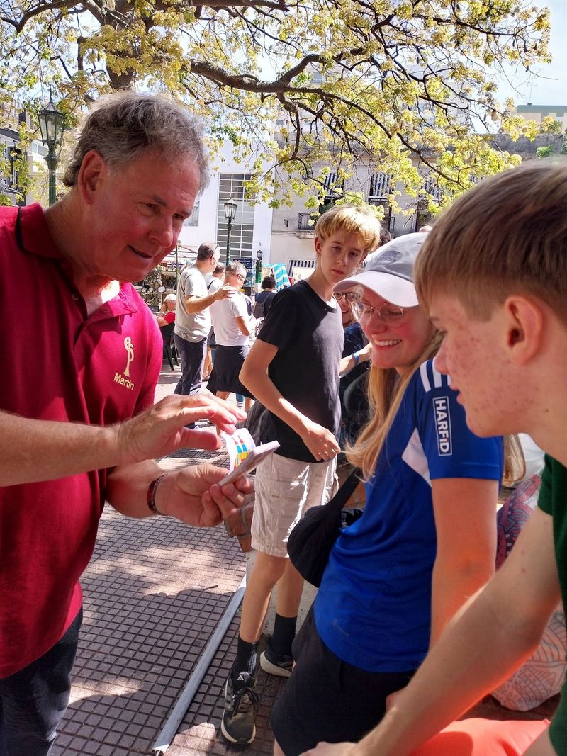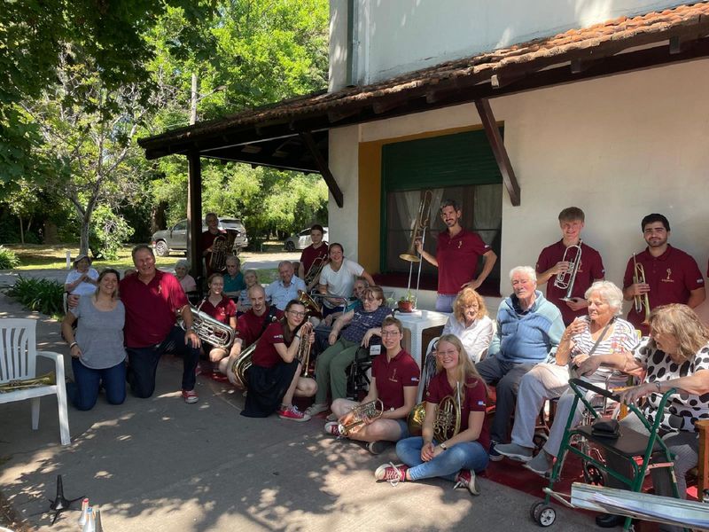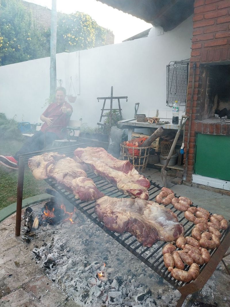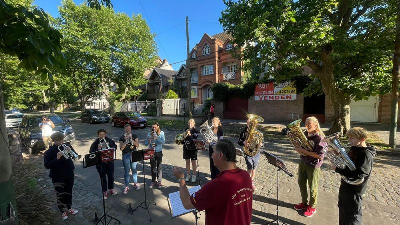 Heute Morgen gab es ganz normal um 8.00 Uhr Frühstück, sodass wir noch genug Zeit hatten im Garten das Gemähte von Martin aufzuharken bis Roberto uns um 10 Uhr abholte. Wir fuhren zu dem Altersheim Euskal-Euchea und spielten dort auf allen drei Stationen. Im Anschluss zeigte uns Alejandro die wohl beste Pizzeria im ganzen Stadtteil, es gab Muzzarela und Jamón. Geschmacklich sind diese zwei Sorten vergleichbar mit Margarita und Schinken, aber sie haben dreimal so viel Käse. Im Anschluss folgte die erste Schule in Argentinien, das Colegio Balmoral in Banfield. Dort haben wir auch drei Konzerte für alle Altersklassen gegeben ehe wir weiter zu dem Instrumentenbauer fuhren. Wir spielten für ihn und seine Familie ein kleines privates Konzert, da er auch auf dieser Reise wieder Instrumente für uns repariert hat. Dieses war am 19.10. die Tuba von Konrad und heute die Trompete von Ella. Außerdem wurden wir von ihm zum Grillen eingeladen. Es war das beste Fleisch, was ich in ganz Südamerika gegessen haben und selbst Roberto aß mit uns. Es war ein schönes Beisammensein, doch wir mussten diesem gegen 23.00 Uhr ein Ende setzten, denn wir müssen morgen früh raus...
