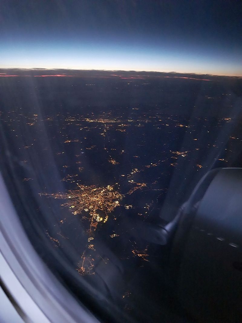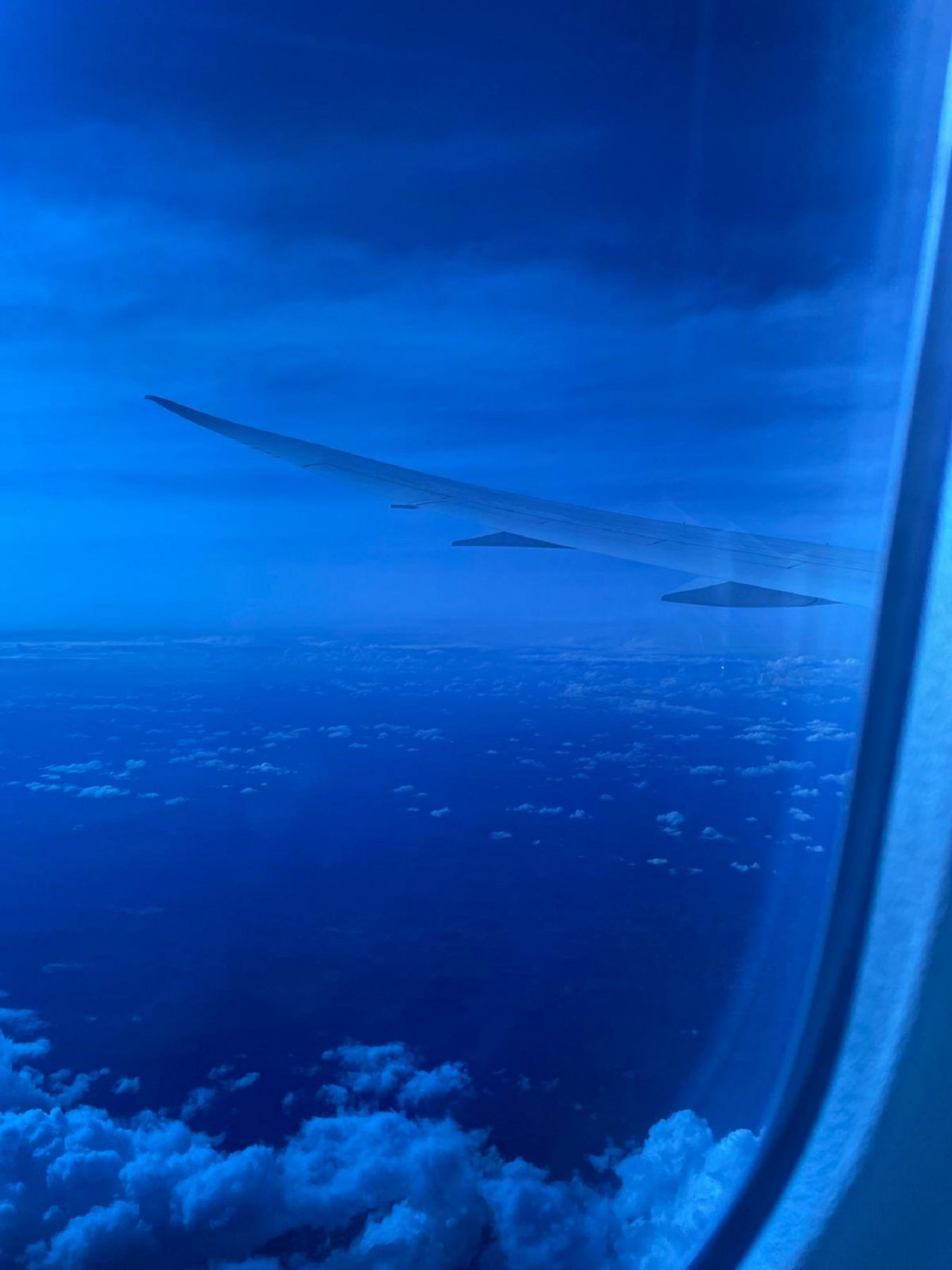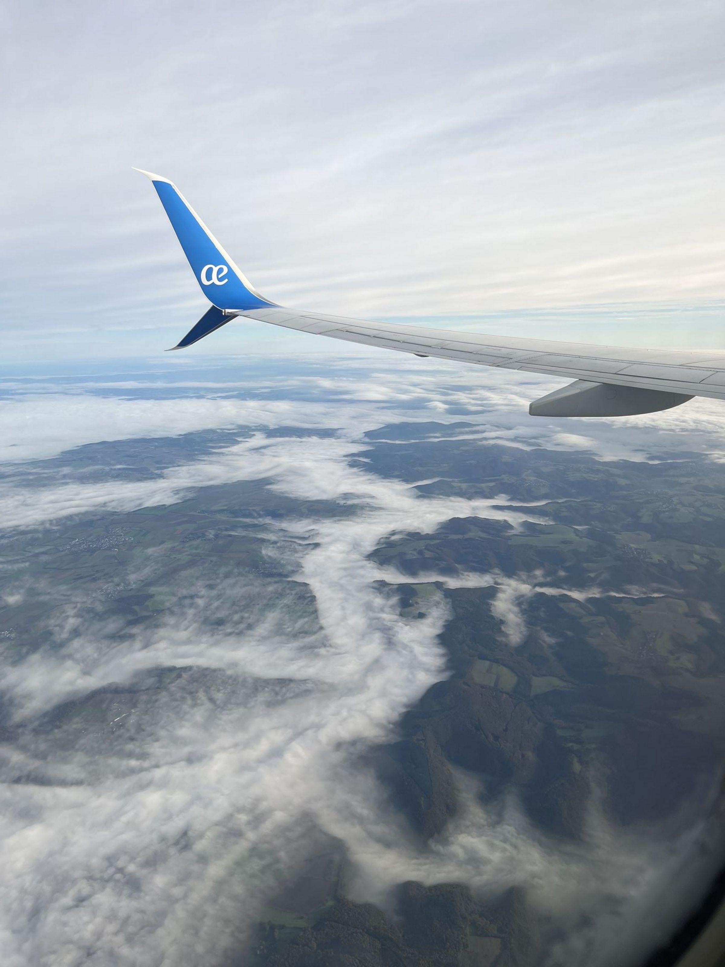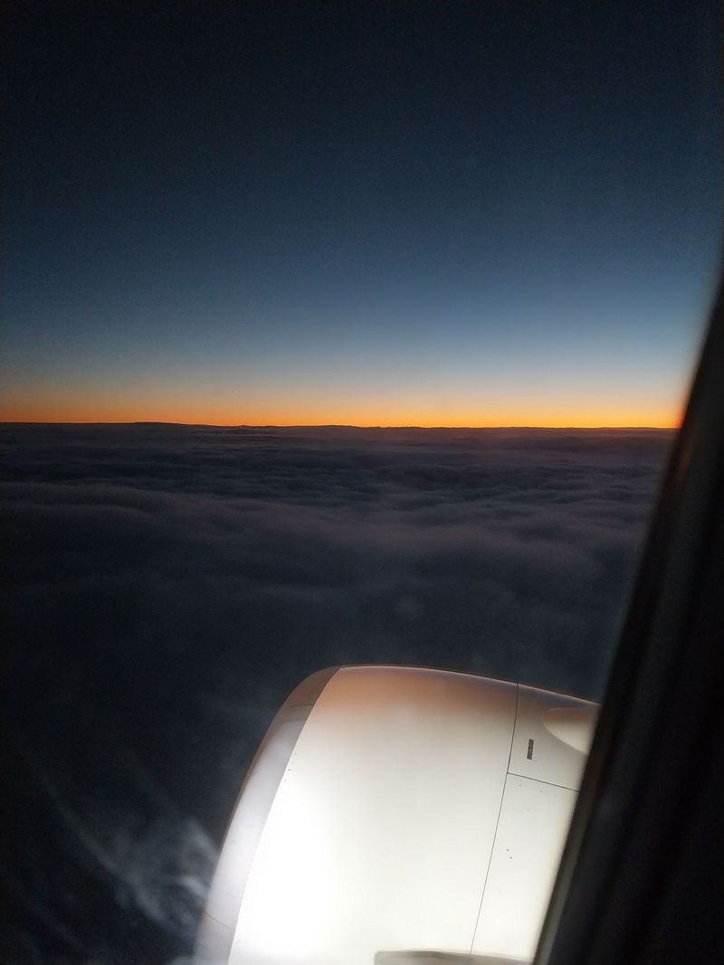 Nachdem wir nach dem relativ langweiligen Flug in Madrid angekommen sind, mussten wir erstmal wieder durch die Kontrolle, wo Christian auf Drogen kontrolliert wurde. Nach einem 12-minütigen Spaziergang durch den unendlichen Flughafen Madrids haben wir beim Burger King gemütlich gefrühstückt. Als wir dann ins Flugzeug gehen wollten, waren wir erstmal an der falschen Schlange und mussten uns nochmal neu anstellen. Bevor wir in's Flugzeug durften, mussten die Trompeten und das Horn dann doch zu den Koffern als Gepäckstücke aufgegeben werden. Im Flugzeug war es dann sehr ruhig und gemütlich und auch der Himmel sah sehr schön aus.