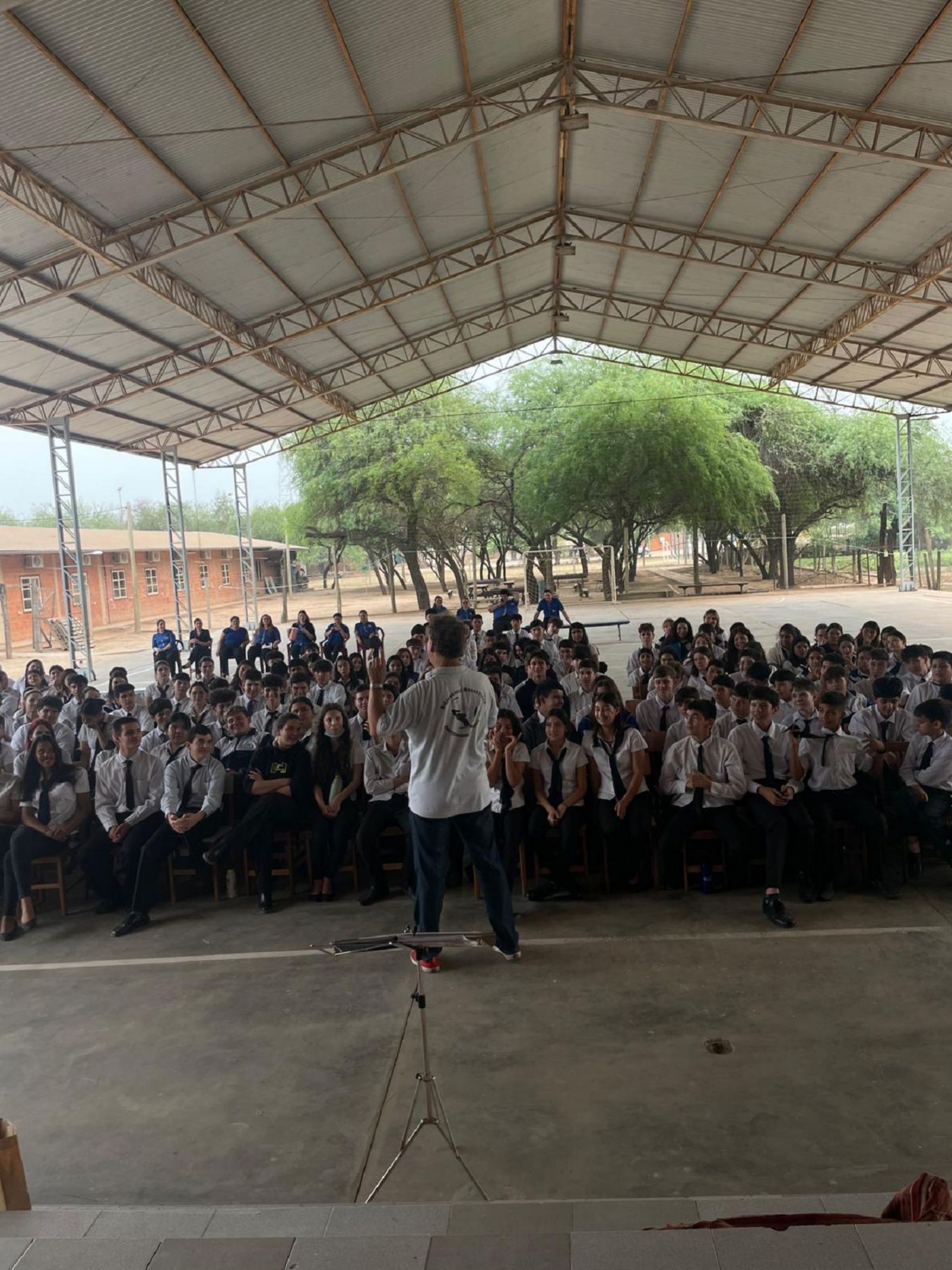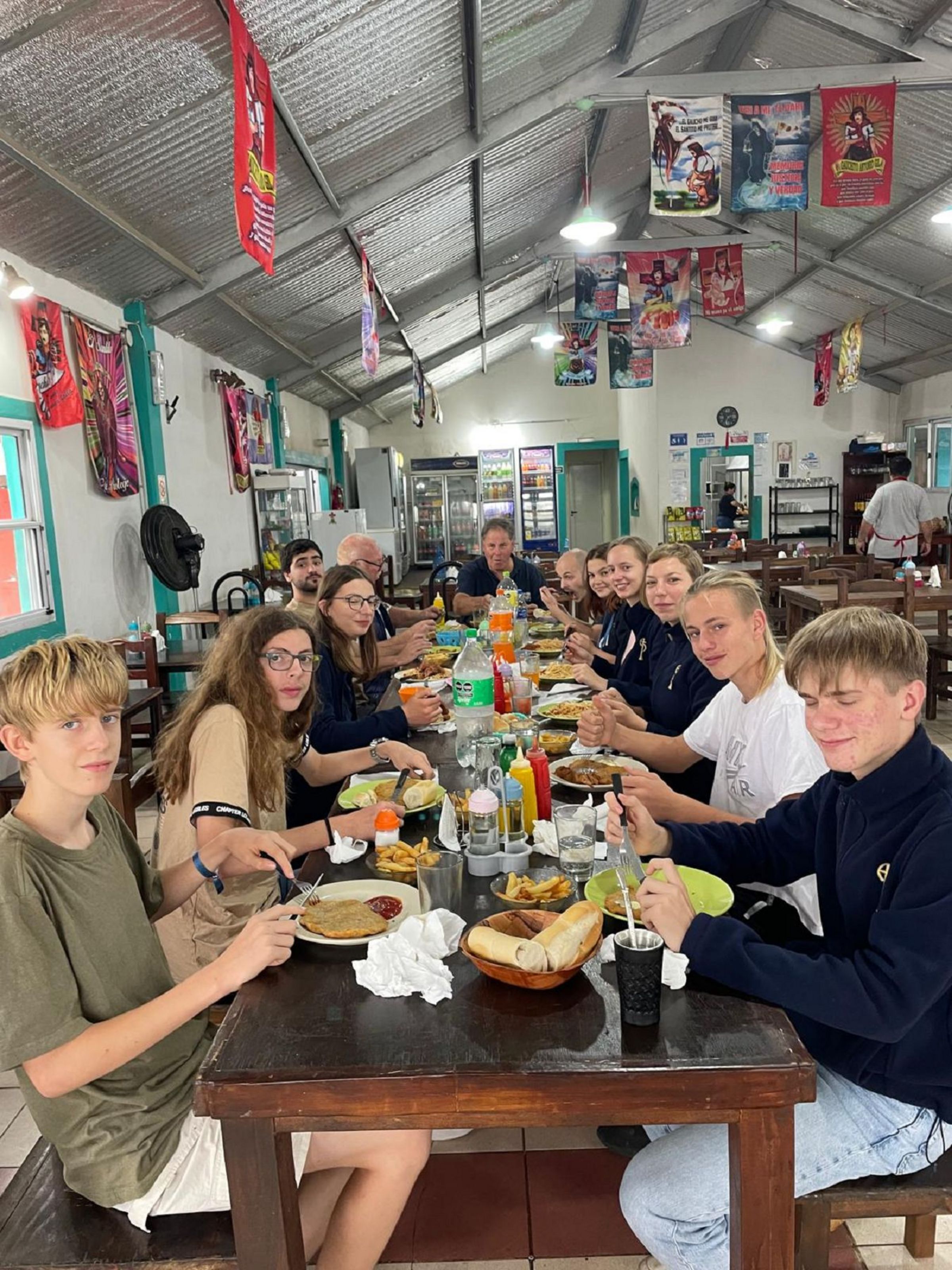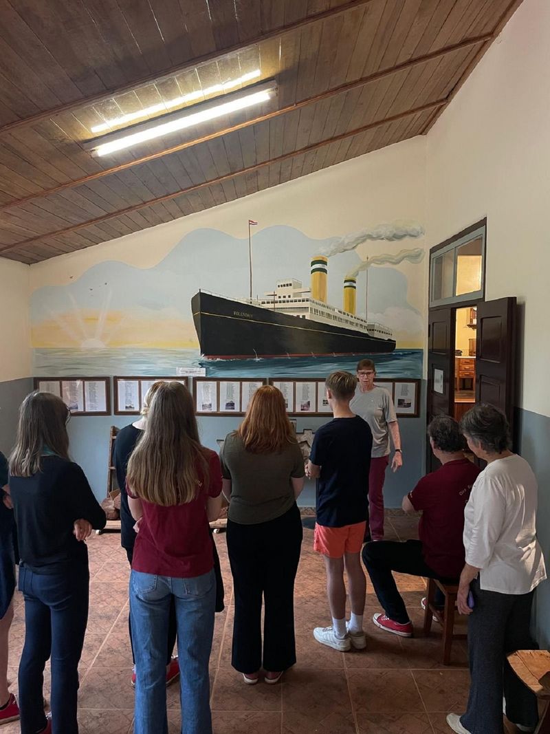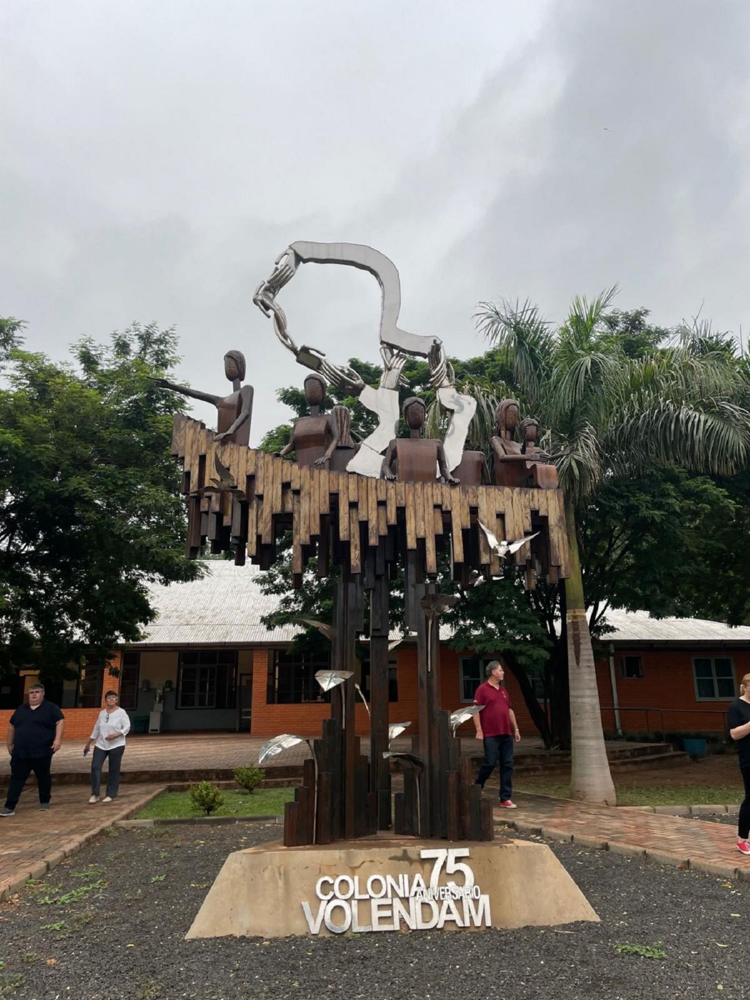 Vor Ort warteten bereits unsere Gastfamilien, die uns freundlich empfingen und zum Mittagessen einluden. Nach einer kurzen Pause musizierten wir im Pflegeheim und brachten den Bewohnern ein Ständchen. Anschließend erhielten wir eine Führung durch ein Museum, das einst eine Schule war. Vor dem Museum steht ein Denkmal, das die Geschichte der Mennoniten erzählt. Der Name Volendam stammt von einem Schiff, das die Mennoniten nach Buenos Aires brachte, von wo sie dann nach Paraguay weiterreisten. Ursprünglich lebten sie in Deutschland, Kanada und Russland, was erklärt, warum sie fließend Deutsch sprechen können.