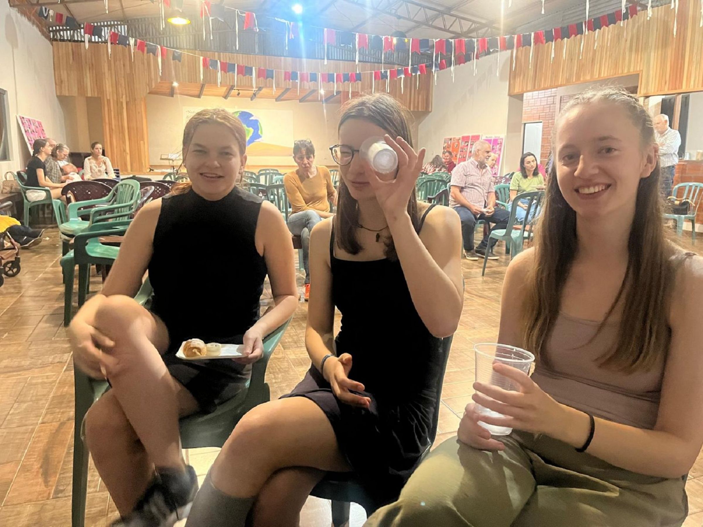 Als wir mit dem Essen fertig waren, sind wir dann weiter nach Viale gefahren, um dort unser letztes Konzert für den Abend zu spielen. Nach drei Minuten Vorbereitungszeit legten wir dort um 20.00 Uhr los und zwar mit dem großen Halleluja von Händel. Auch dieses Stück spielten wir das erste Mal in Südamerika. Nach einem schönen Konzert versuchten ein paar Mädchen uns ihre Partymusik vorzustellen und uns vergeblich zum Tanzen zu bewegen. Der Misserfolg war aber kein Rückschlag für sie, es wurde stattdessen viel geredet und gelacht. Während des Essens wurden wir von einem älteren Herren unterbrochen, der kraftvoll ein Lied auf Deutsch für uns zum Besten gab. Darin ging es darum, dass man fröhlich sein und den Wert des Lebens schätzen soll.