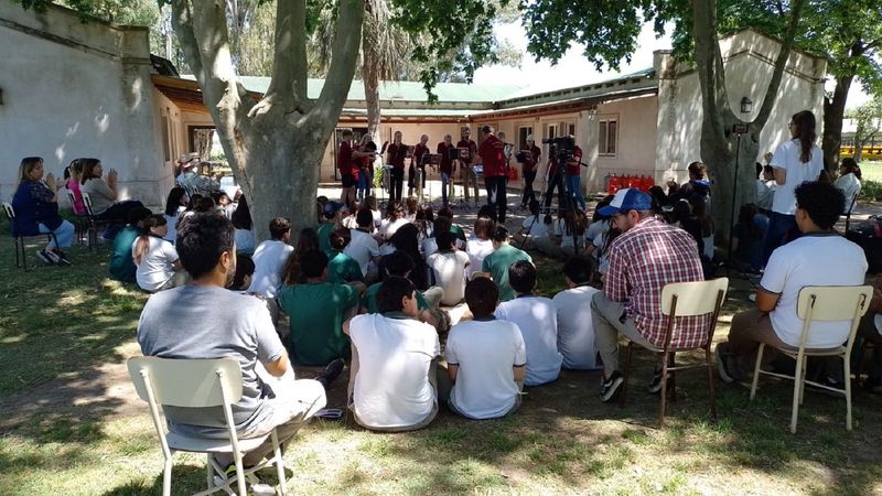 Nächster Halt: Escuela agrotecnica de San Miguel del Monte. Nach einer Stärkung spielten wir dort vor den Schülern, welche uns danach gern das Schulgelände zeigten. Dieses ist dafür ausgelegt, den Schülern alles über die Land- und Viehwirtschaft beizubringen, ein wichtiger Schwerpunkt in dieser Region trotz des recht nährstoffarmen Bodens. Danach fuhren wir zum "klassischen" Teil der Schule, wo alle "normalen" Fächer unterrichtet werden. Auch hier spielten wir wieder für die Schüler. Da wir noch Zeit hatten, besuchten wir einen typisches Gaucho-Geschäft (Landwirt). Hier wurden fleißig Hosen anprobiert, sowie Gürtel oder Mate-Zubehör gekauft.