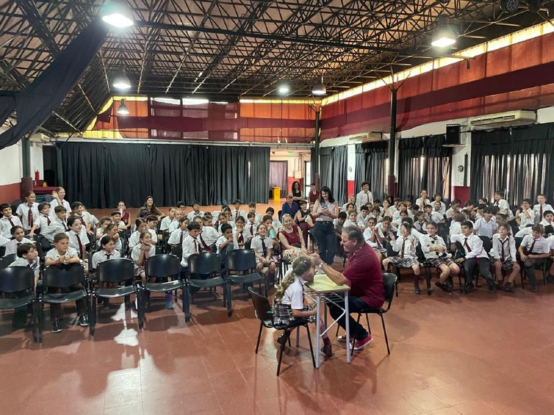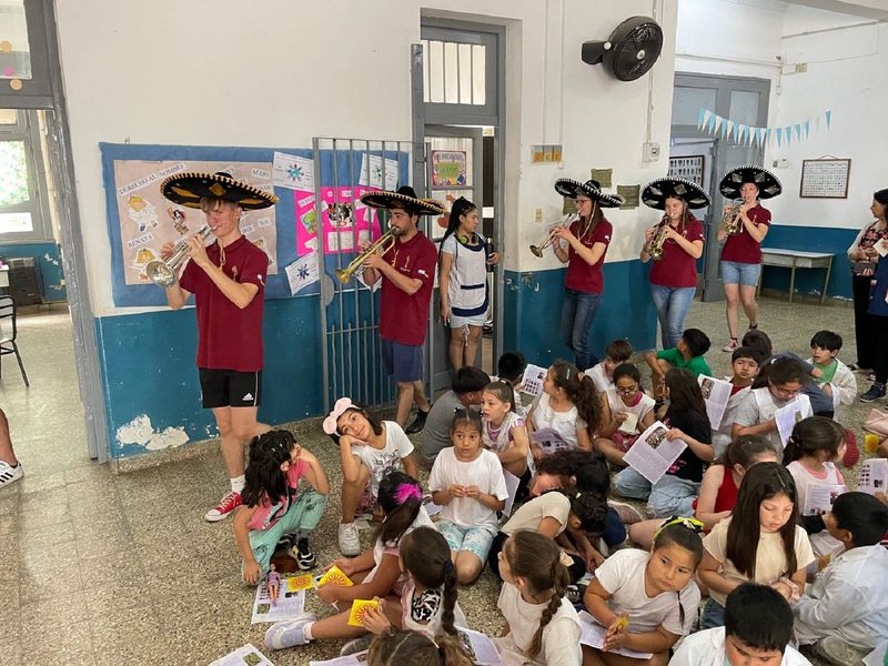 Ein Tag, der leider unnötig früh begann. Statt 7.00 Uhr haben wir schon um 6.00 Uhr gefrühstückt, obwohl wir erst um 8.00 Uhr abgeholt wurden. Normalerweise reicht es immer aus, eine Stunde vor Abfahrt zu frühstücken. Die freie Zeit nutzen viele nochmal für einen Powernap und andere machten eine kurze Sportrunde zum Aufwachen. Als wir dann endlich abgeholt wurden, fuhren wir zur Goethe-Schule in San Isidro, Buenos Aires. Sie wird von vielen auch die Elite-Schule genannt, da sie die einzige Schule in Buenos Aires ist, die das deutsche Abitur anbietet. Als wir dann da waren, begannen wir um 10.00 Uhr mit unserem ersten Auftritt im Kindergarten. Es ist immer so schön zu sehen, wie neugierig und fröhlich die Kinder sind. Nach einer Pause mit Frühstück, einer Runde Volleyball und Fußball ging es dann in der Primaria (Grundschule) weiter. Anschließend gab es dann für uns Mittagessen.