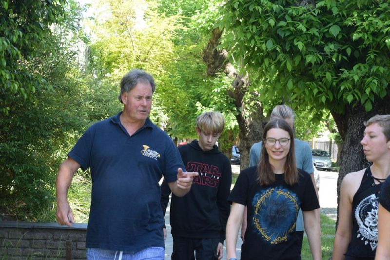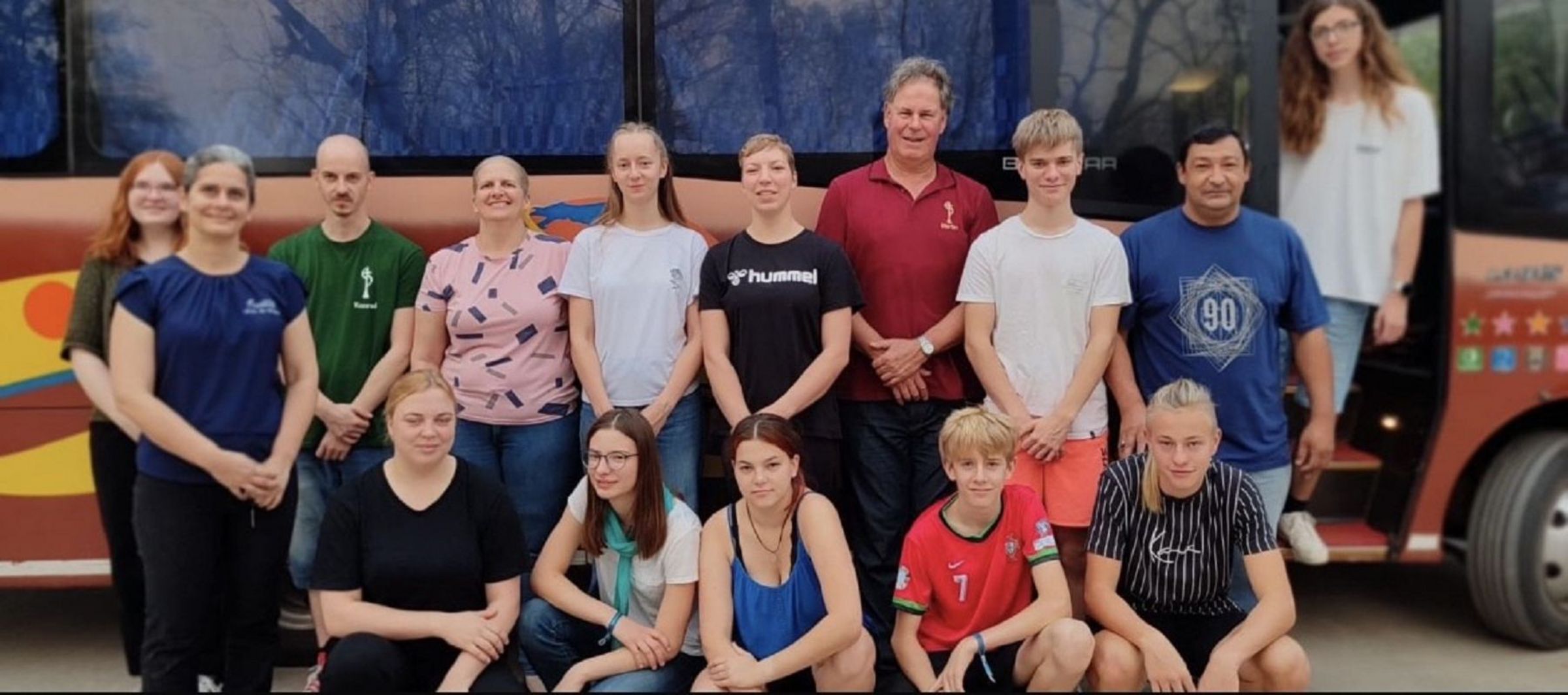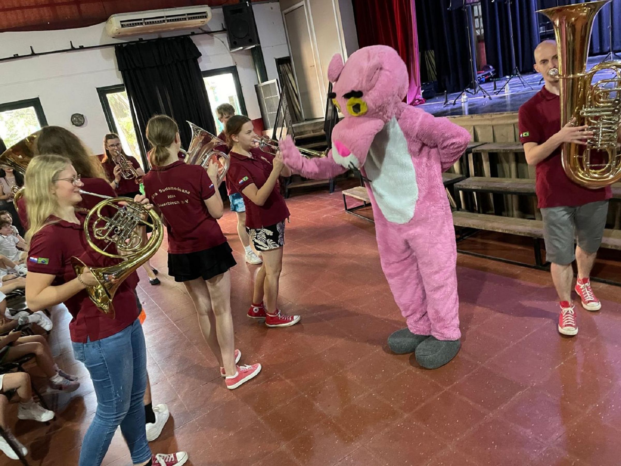 Der nächste Anlaufpunkt des Tages stellte eine Museumstour über die Geschichte von Neuland dar, die für uns extra kurz gehalten wurde, damit wir noch mit dem Museumszug durch den Ort fahren konnten. Im Anschluss bestritten wir gemeinsam das Konzert und auch Martin hatte seinen ganz besonderen Auftritt als Pink Panther. Das erheiterte nicht nur das Publikum, sondern auch die Bläser und den Dirigenten. Der Tag wurde mit einem gemeinsamen Abendbrot sowie sportlichen Betätigungen (Fußball, Volleyball) gekrönt. Gegen 22 Uhr fuhren wir wieder zurück nach Fernheim, um dort von unseren Gastfamilien in Empfang genommen zu werden.