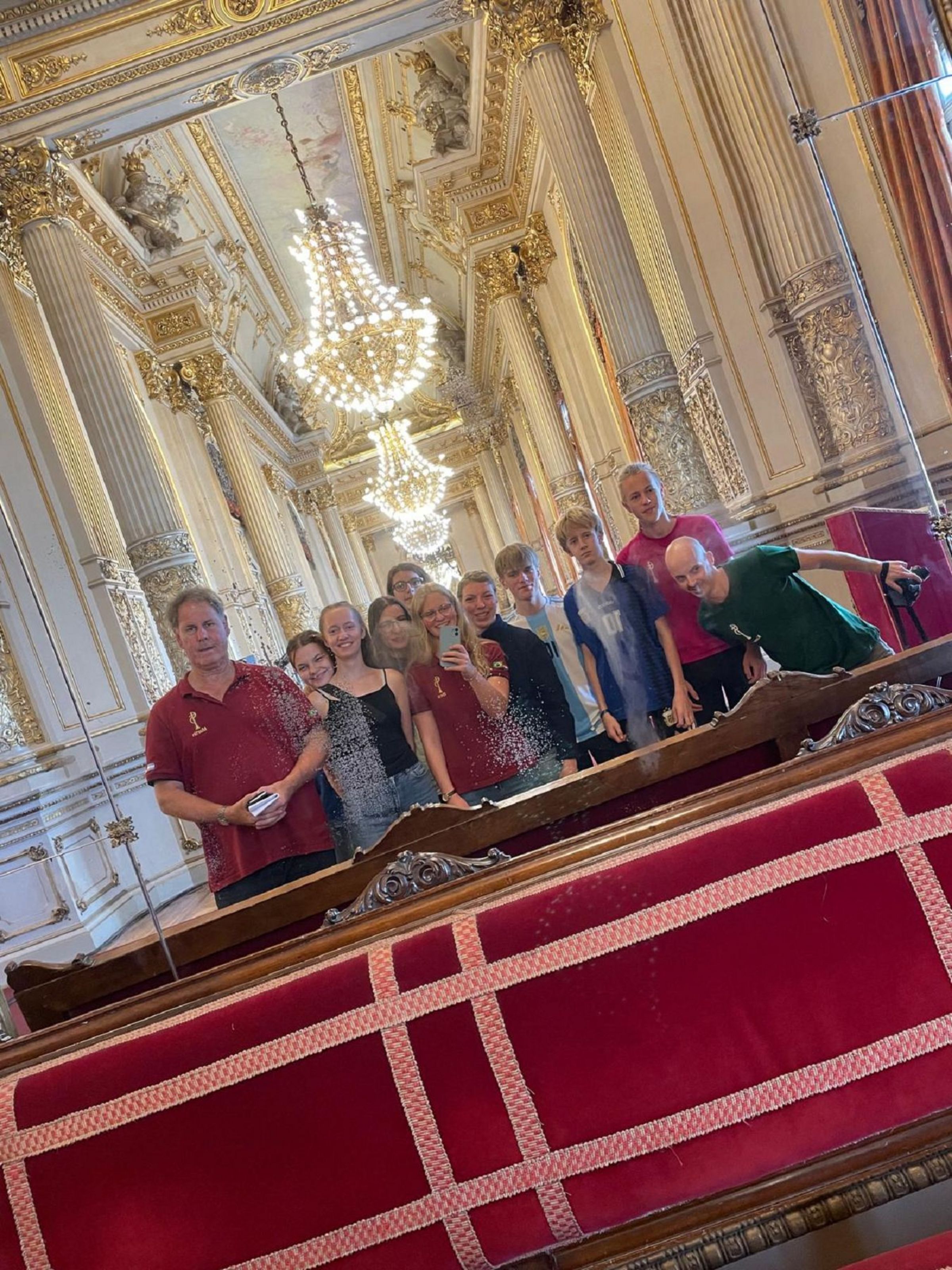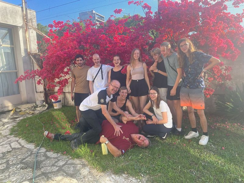 Heute Morgen wachten viele von uns mit einem komischen Gefühl auf, der letzte Tag mit Auftritten. Aber dafür ganze vier Stück. Nach dem Frühstück starteten wir zu einer staatlichen Schule. Der erhöhte Geräuschpegel, den wir ja schon gewohnt waren, wurde nocheinmal deutlich übertroffen als Martin alle mit seinem Zauberbuch verblüffte. Bei diesem Buch kann man mit verschiedenen Blätterweisen entweder leere, schwarz-weiße oder farbige Seiten sehen. Im Anschluss ging es in das Altersheim in Banfield, wo unser zweiter Auftritt stattfand. Nach einer breiten Palette an Chorälen machten wir uns dann auf den Weg zum Theater Colon, dem größten Theater des Landes. Wir bekamen eine Führung und durften sogar "Laudate Omnes Gentes" singen. Danach fuhren wir zum Maria Luisen Kinderheim, wo wir nicht nur unser musikalisches Könnes zeigen mussten, sondern auch beim Fußball herausgefordert wurden. Wir hielten den fußballbegeisterten Kindern stand und führten unseren Streak, alle Fußballspiele zu gewinnen, weiter. Unser letztes Konzert der Reise fand dann bei den Donauschwaben in Villa Ballester statt. Es war ein sehr gelungener Abend mit guter Musik, exzellentem Essen und sogar Kegeln. So ging unser vorletzter ganzer Tag zu Ende und wir fielen alle totmüde ins Bett.