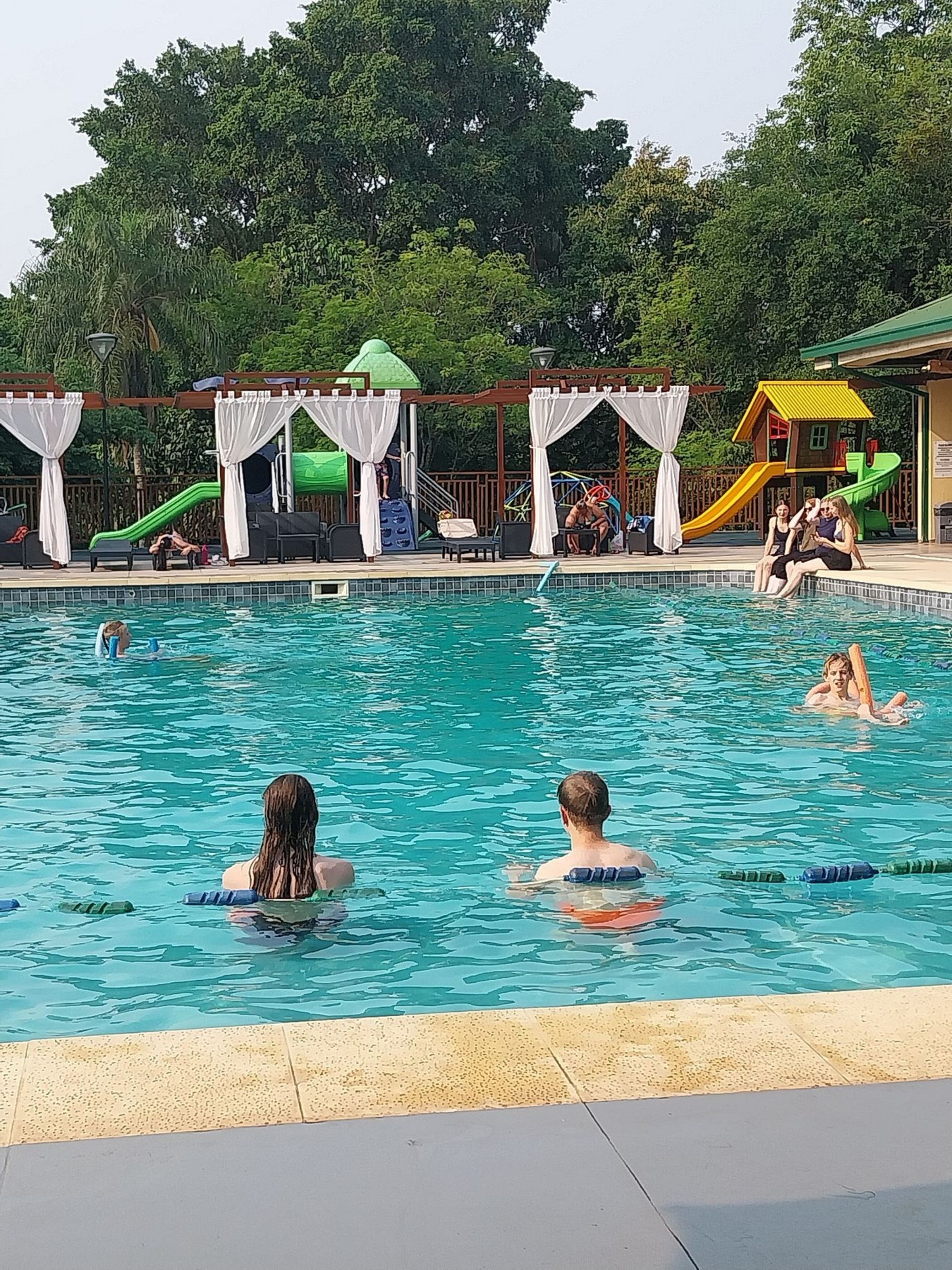 Mit einem vollen Handyspeicher und einem sehr leeren Magen überquerten wir um ca. 13 Uhr die Argentinische Grenze. Nach dem Einchecken im Hotel Esturion besuchten ein kleines Restaurant, welches zum Glück Ventilatoren besaß, denn die Temperatur betrug mittlerweile 34 Grad. Im Anschluss gingen wir im Eilschritt 30 Postkarten kaufen, um möglichst schnell den Pool des Hotels zu besuchen. Dort kühlten wir uns bis um 16:15 Uhr ab, unterbrochen von einem 20 minütigen Tennismatch zwischen den Jungs.