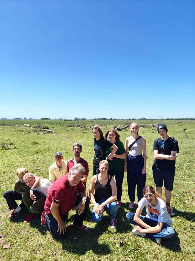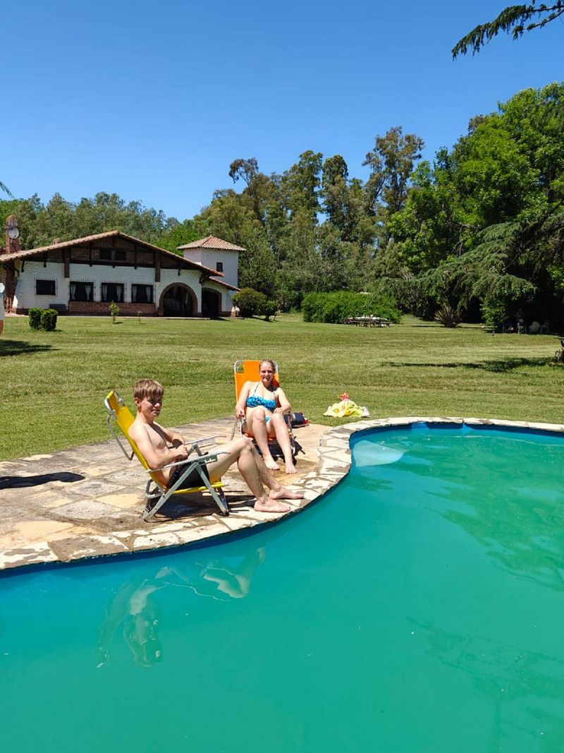 7.00 Uhr Frühstück - 7.30 Uhr Ständchen für Ili zum Geburtstag - 7.45 Uhr Abfahrt nach Monte. - So war es geplant. Aber wie das so immer ist, haben wir es natürlich nicht geschafft, es einzuhalten. Wir fuhren tatsächlich erst um 8.20 Uhr aus Banfield los. Ich würde gern sagen, dass es die längste Verspätung ist, die wir bis jetzt hatten, aber viele haben bestimmt schon mitbekommen, dass dies nicht der Fall ist. Bevor wir unseren ersten Halt erreichten, gab es noch drei Zwischenstopps. Wir schafften es aber nur mit einer halben Stunde Verspätung zur Estancia "La Liberdad". Dort spielten wir unser zweites Ständchen für Martins Freunde. Wir hatten noch etwas Zeit, deshalb entschieden sich Bea und Christian den dortigen Pool auszuprobieren. Wir anderen ließen uns die Farm zeigen und staunten über die Weite und Schönheit der Pampa, welche dort beginnt.