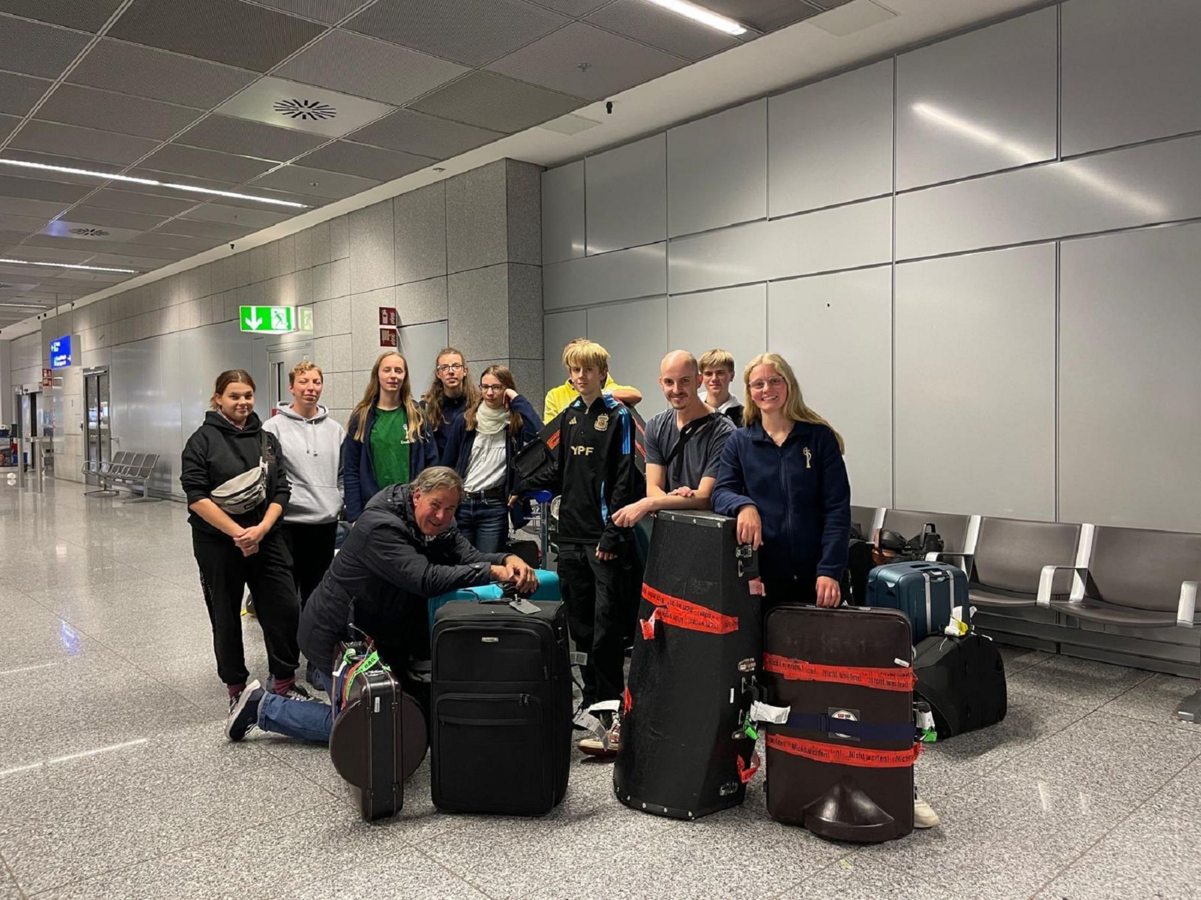 Gelandet in Frankfurt gingen wir dann gespannt zum Kofferband, um unsere Koffer entgegenzunehmen. Direkt wurden die Instrumentenkoffer geöffnet, um zu überprüfen, ob die Instrumente kaputtgegangen sind. Zu unser aller Freude: alle Instrumente sind diesmal ausnahmsweise heil geblieben.
