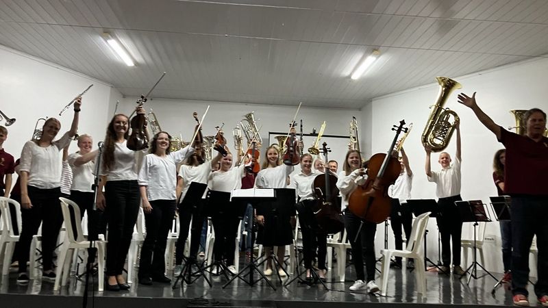 Querblech - dahinter verstecken sich zwölf Jugendliche und junge Erwachsene von 14 bis 25 Jahren aus Mecklenburg-Vorpommern, die gemeinsam mit ihren Blechblasinstrumenten musizieren. Seit Dezember 2023 bereiten wir uns auf unsere Südamerika-Tour vor unter der Leitung vom Landesposaunenwart Martin Huss. Diese findet vom 04.10.2024 bis 03.11.2024 statt und umschließt die Länder Paraguay, Brasilien und Argentinien. Wir werden nicht nur Konzerte spielen, sondern auch Auftritte in Schulen, Kindergärten und Seniorenheimen haben. Kommt mit auf unsere Reise: