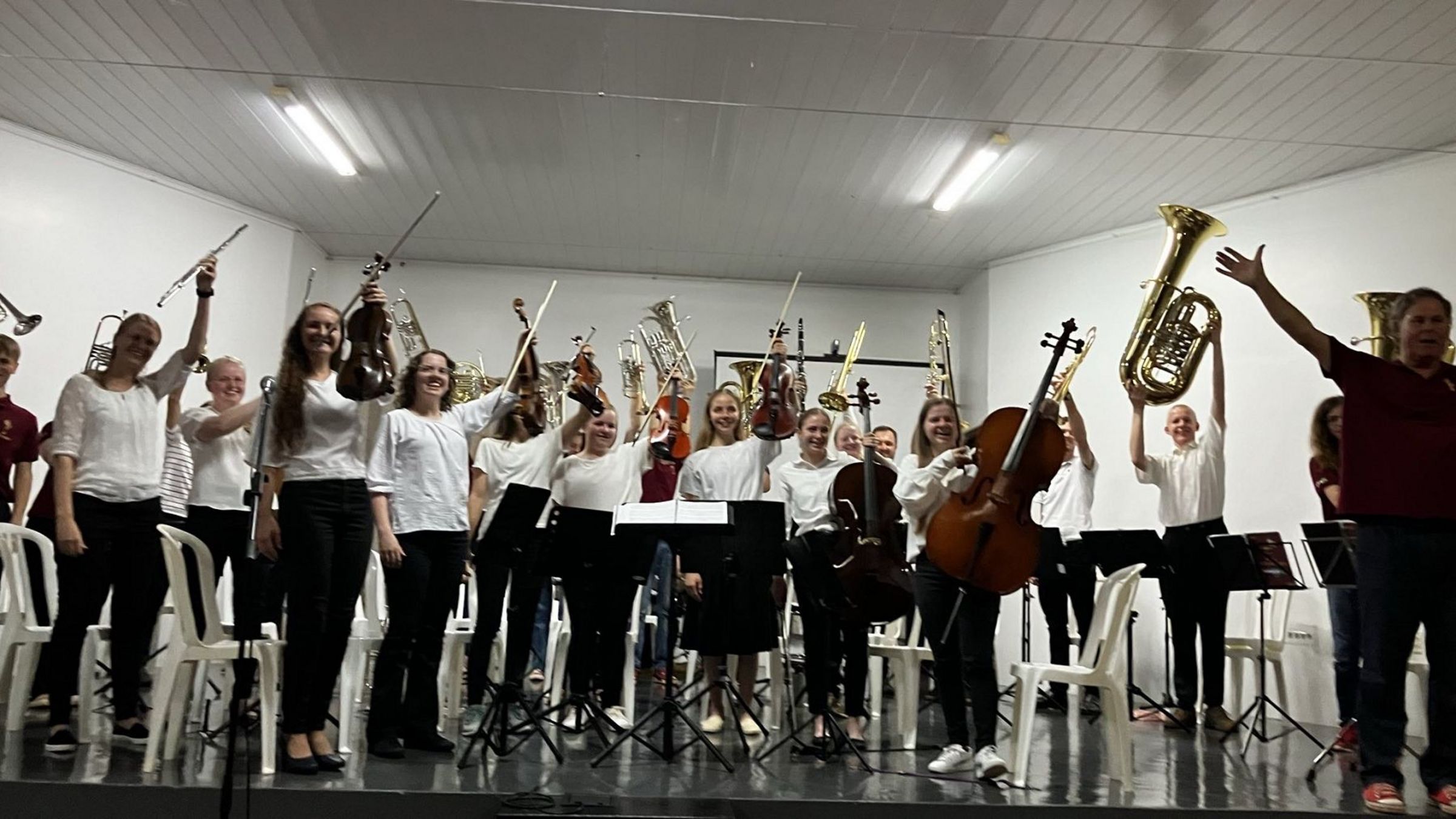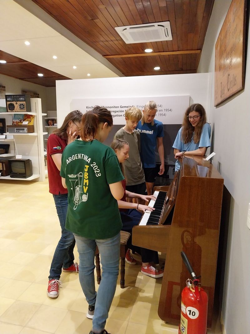 Am Ziel angekommen packten wir schnell die Instrumente aus dem Bus aus, um für die Schüler der Schule in Friesland Central zu spielen. Aufgrund unserer unfreiwilligen Fahrtunterbrechung fiel es deutlich kürzer aus als geplant. Danach wurden wir von unseren Gastfamilien abgeholt und aßen mit ihnen gemeinsam zu Mittag. Um 14:00 Uhr trafen wir uns im Verwaltungsgebäude. Dort wurde uns ein Video gezeigt, in dem erklärt wurde wer die Mennoniten sind, wie die Colonie Friesland entstanden ist und wie die 620 Bewohner heute hier leben. Es folgte ein Besuch im Museum. Diese begann mit einer selbstständigen Begehung und endete mit einer gemütlichen Terere-Runde mit unserer Führerin, um noch offene Fragen zu klären. Manche nutzen auch die Möglichkeit, um ihre Fähigkeiten am Klavier zu zeigen. Als nächstes gingen wir zum Altersheim, um den Leuten eine kleine Freude zu machen. Um 18:00 Uhr gab es eine kleine Anspielprobe für das um 19:00 Uhr stattfindende Konzert. Nach dem Konzert wurden wir von unseren Gastfamilien abgeholt und ließen den Rest des Tages gemeinsam ausklingen.