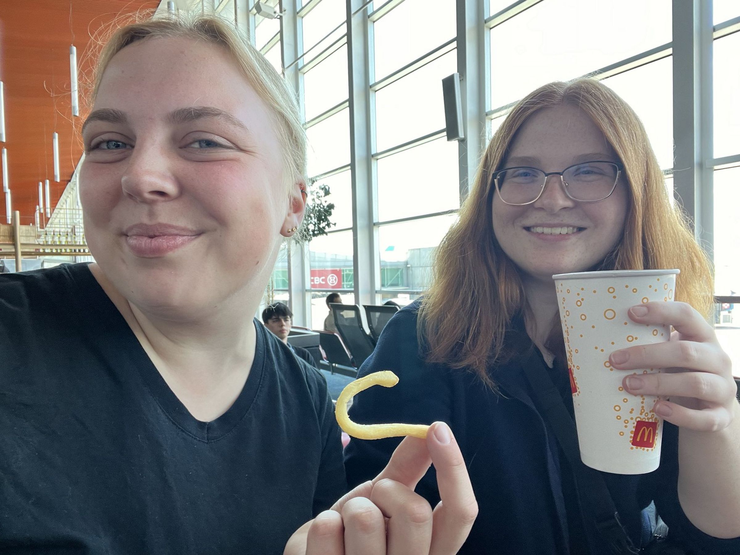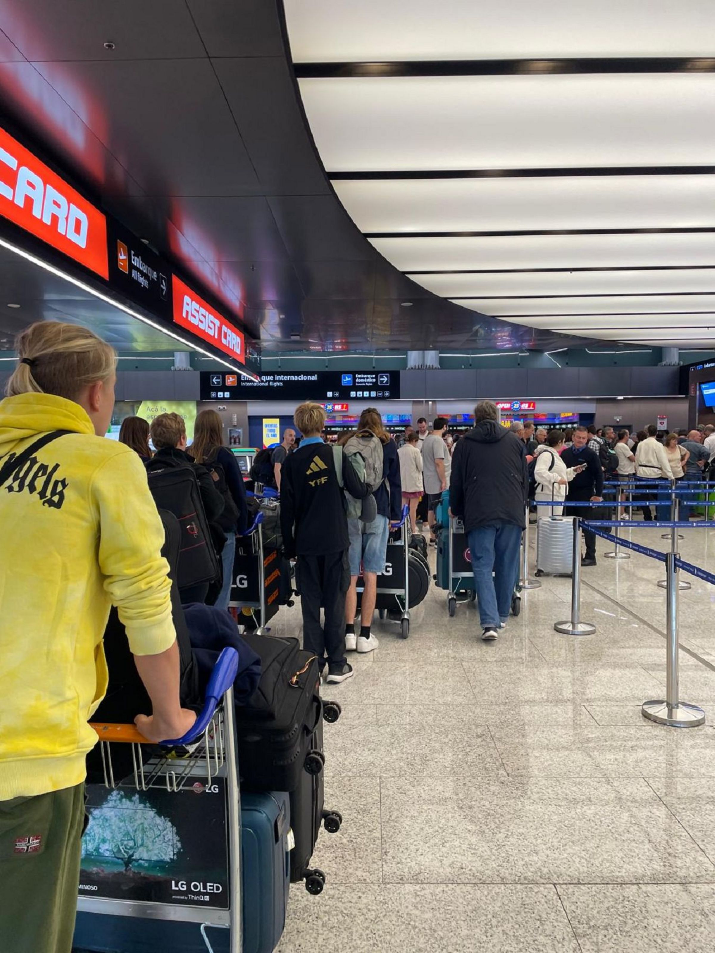 Nachdem in der Sicherheitskontrolle noch einige Trompeten und Hörner genauer unter die Lupe genommen wurden, waren wir froh, alle an unserem Gate zu sitzen.
