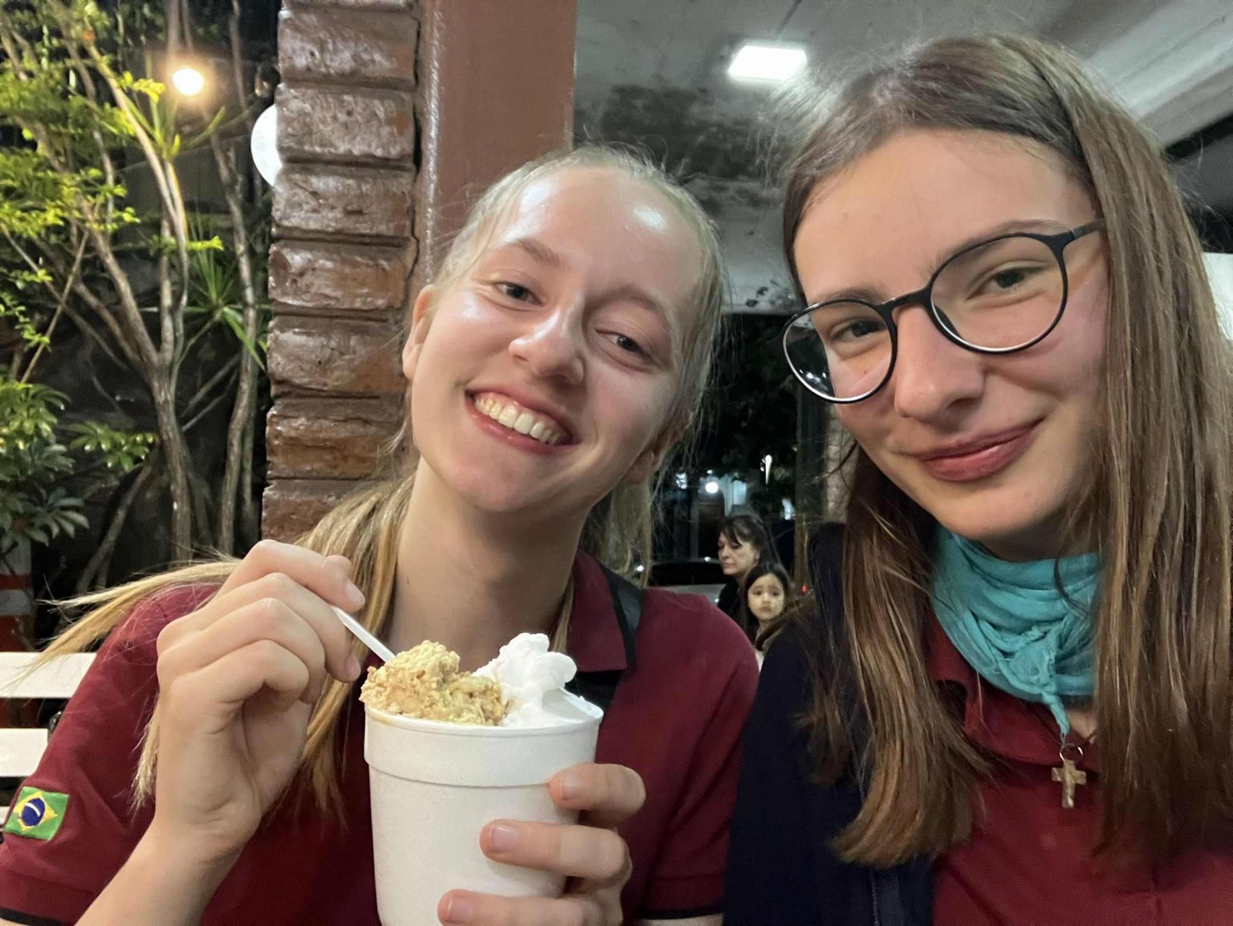 Das Denkmal zeigt Hände, die Paraguay symbolisieren, und Vögel, die für die unberührte Natur stehen. Wir haben dabei viel Neues gelernt. Danach wurden wir von unseren Gastfamilien für einen kleinen Snack abgeholt und zum Konzert gebracht, das um 19:00 Uhr begann. Nach dem Konzert gab es Abendessen, und wir verbrachten einen schönen Abend im Gespräch mit unseren Gastfamilien.