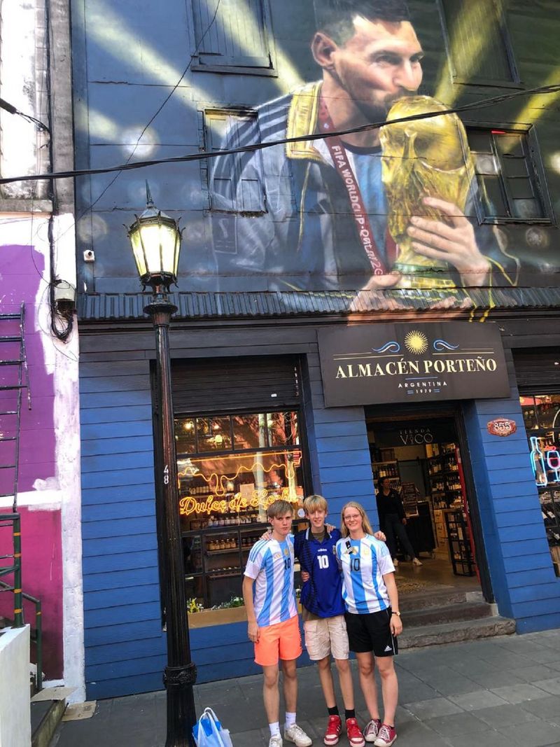 Anschließend sind wir vom Kindergarten zum Viertel La Boca losgefahren. Während der Fahrt hat uns Martin erzählt, warum la Boca so besonders ist. Die Häuser dort sind alle durch einen Künstler bunt bemalt worden, um die Gegend zur schönsten Gegend in Buenos Aires zu machen. Jedoch ist viel wichtiger zu sagen, dass die Menschen, die dort ankamen, kein Geld hatten und in Blechhäusern wohnten, die dann eben bemalt wurden. Dort gibt es unzählige Läden, wo wir natürlich unterwegs waren und was gekauft haben. Darunter Ponchos, Trikots und weitere Souvenirs. Um 16.00 Uhr gab es dann Mittagessen. Was gab es? Pizza. Die haben wir in der Straße Corrientes gegessen, die Straße die nie schläft.