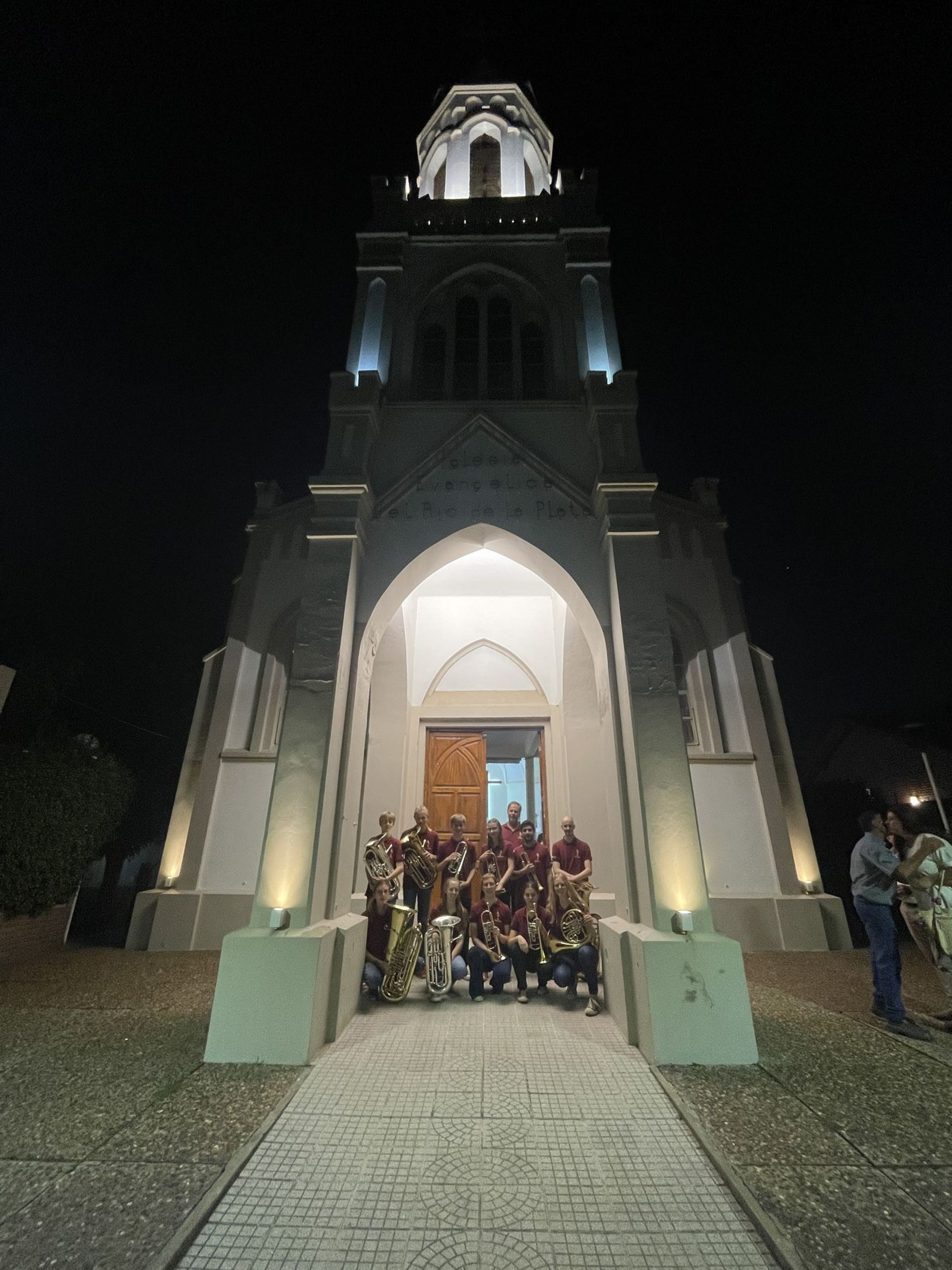 Nach der kleinen Stärkung mussten wir weiter zur Kirche für unser Konzert. Wir haben dann noch ein paar Stücke angespielt und konnten uns noch umziehen. Das Konzert war der Wahnsinn. Wir haben fast zwei Stunden gespielt und die Besucher des Konzertes waren sehr begeistert. Unter den Besuchern war auch Jorge Tagliapietra, der verschiedene Stücke für uns arrangiert hat, unter anderem das Stück Muchachos, das die Argentinier seit ihrem Sieg der Fußball-Weltmeisterschaft singen. Der Abend hat mit einem leckeren Abendessen geendet. Es gab pulled pork und etwas Salat.