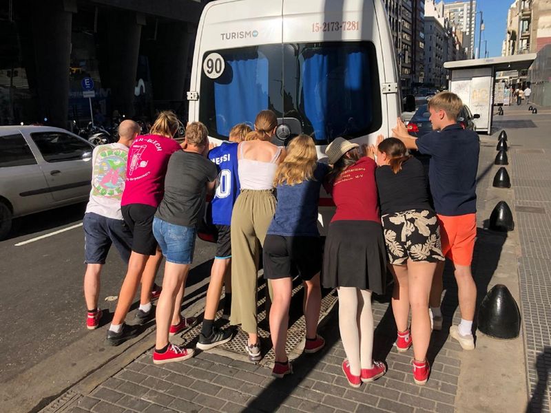 Dann ging es schon zu unserem letzten Punkt des Tages, dem Konzert im deutschen Klub in Buenos Aires. Doch um überhaupt dahin zu gelangen, mussten wir den Bus schieben, der eine kleine Starthilfe brauchte. Um 18.00 Uhr war das Konzert, gegen 19.30 Uhr waren wir fertig und aßen zum Abendessen was? Natürlich wieder Pizza. Kurz nach 20.00 Uhr machten wir uns dann auf den Weg nach Hause. Nun läuft leider schon der Countdown und in vier Tagen geht es leider schon zurück nach Deutschland.
