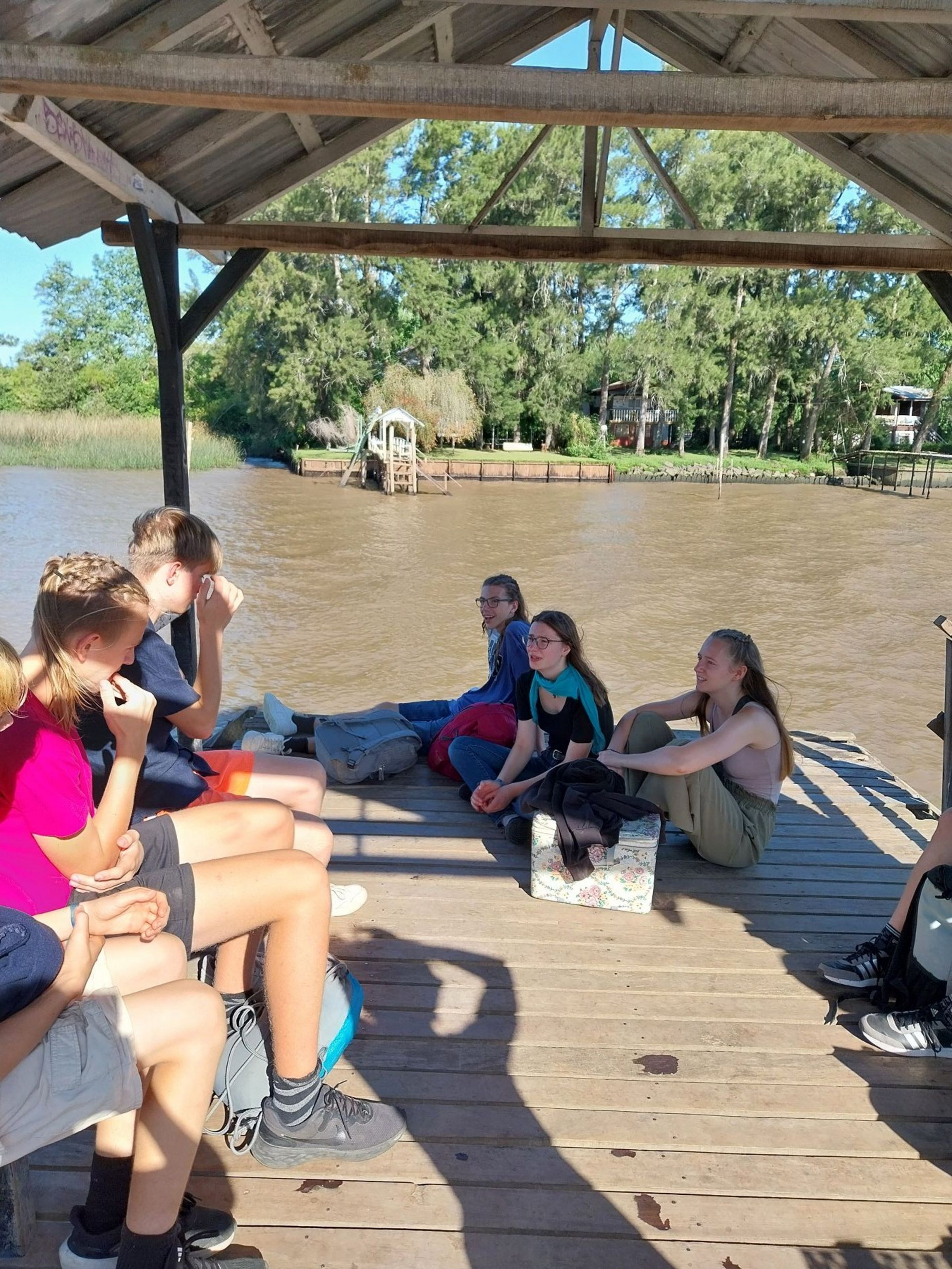 Unser vorletzter Tag begann mit einem Frühstück um 07.00 Uhr. Kurz danach gingen wir auch schon um 07.30 Uhr zum Bahnhof. Um 08.00 Uhr fuhr der Zug los. Nach 2 mal umsteigen waren wir dann um 10.00 Uhr am Hafen im Tigre-Delta. Dort angekommen haben wir erstmal eine kleine Pause gemacht, weil wir auf das Boot warten mussten, was um 11.30 Uhr dann auch kam. Nach einer halben Stunde Bootsfahrt im Tigre-Delta sind wir bei unserer Ziel-Insel angekommen. Während unser Grillmeister Alejandro das Essen zubereitete, wurde Tischtennis und Fußball gespielt. Einige haben sich dazu entschieden Kanu zu fahren.