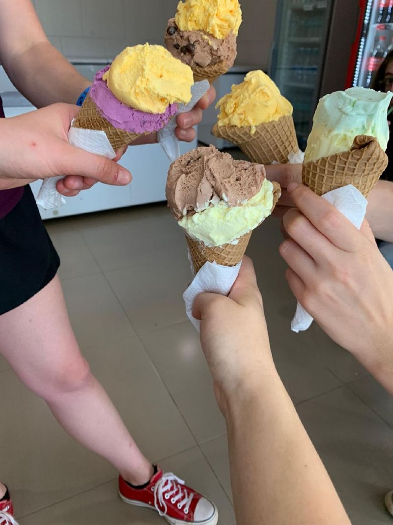 Um 13.30 Uhr gab es dann das Mittagessen, welches aus Fleisch im Brötchen bestand. Es gab auch die Möglichkeit, Tomaten und Salat dazu zu essen. Nach dem leckeren Mittagessen sind einige zu einem Kiosk gegangen, um Wasser und Kekse zu besorgen, aber der Großteil der Gruppe ruhte sich aus. Außer Jörn, Leonard und Marvin, denn die haben Fußball gespielt. Später ist ein Teil der Gruppe noch baden gegangen. Um 15.30 Uhr gab es eine kleine Kaffee Pause mit Keksen.