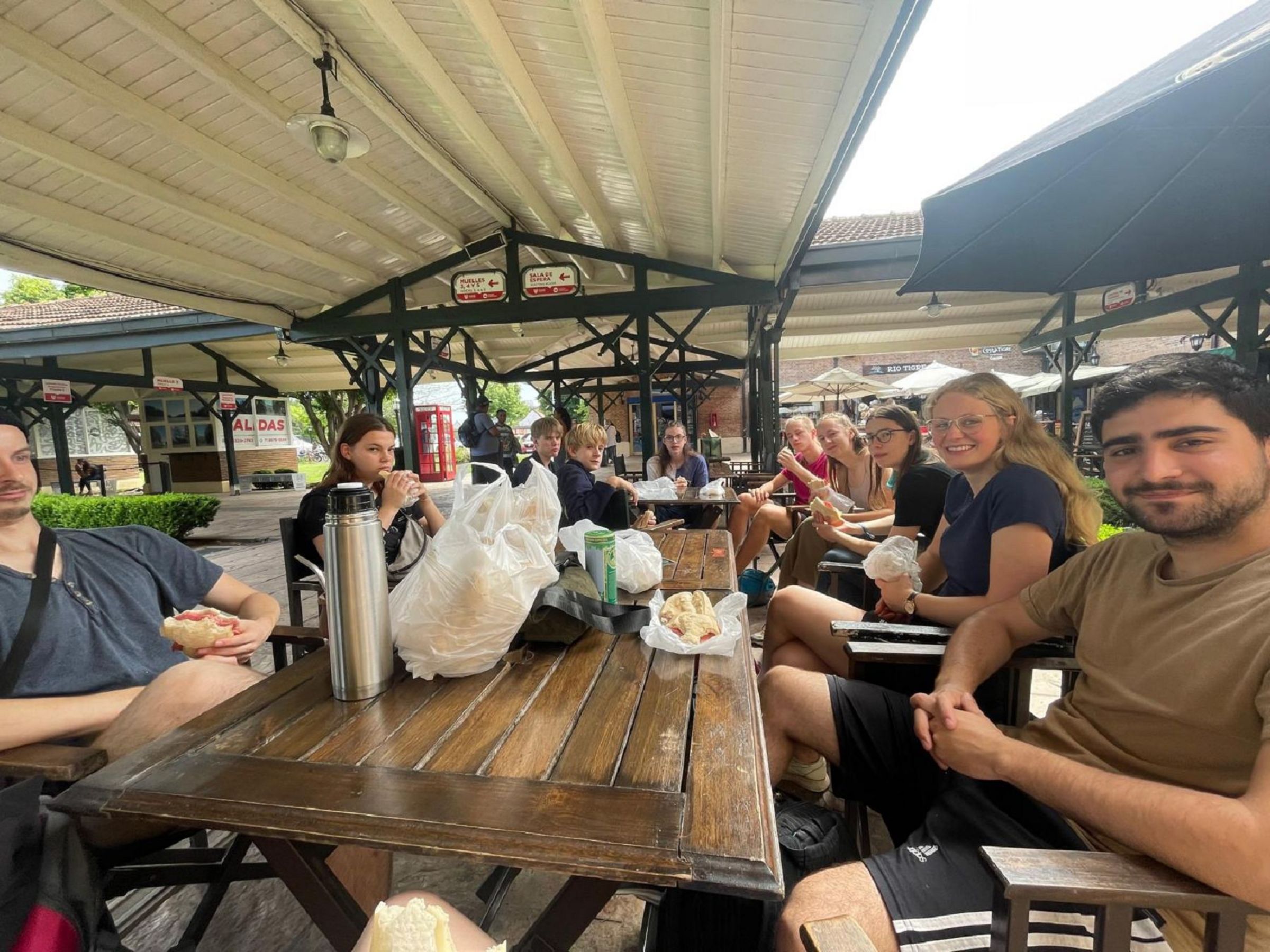 Am Morgen des 24. Oktobers sind wir gemütlich und teilweise auch müde aus den Betten im Hotel Garten in Crespo gekrochen. Nachdem wir ein leckeres gemeinsames Frühstück hatten, mussten wir unsere Sachen packen und haben uns in den Bus von Roberto begeben. Nachdem wir rund 5 Stunden gefahren sind, gab es an einer Raststätte Empanadas als Vorspeise und Nudeln oder Schnitzel mit Pommes als Hauptspeise.