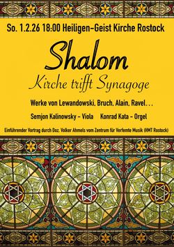 Das Duo Kalinowsky/Kata musiziert spätromantische Werke Werke von Lewandowski, Bruch und anderen unter dem Titel „Shalomkirche trifft Synagoge“.