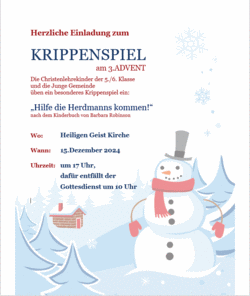 … dabei hätte es wieder solch ein schönes Krippenspiel werden sollen, so schön wie jedes Jahr!“, jammert Frau Armstrong, die dieses Jahr als Spielleiterin ausfällt.