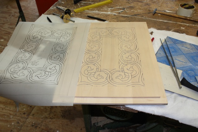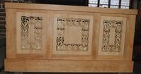 Der Förderverein für die Kirchenmusik in unserer Gemeinde hatte übernommen, geeignete Schritte hierfür zu unternehmen und die zurzeit noch geschlossenen Frontflächen-Paneele zu öffnen. Durch Vermittlung der Orgelbaufirma Lorenz wurde der niederländische Holzschnitz-Künstler T. Top mit der Frage konfrontiert, ob er eine geeignete geschnitzte Gestaltung der drei Flächen entwerfen könnte. Er hatte eine Sammlung von Motiven aus dem Kirchenraum zur Verfügung und hat uns jetzt den abgebildeten Entwurf eingereicht.