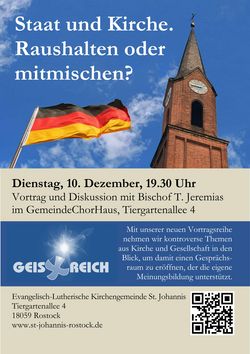 GeistReich - Vortragsreihe: „Staat und Kirche - raushalten oder mitmischen?"
