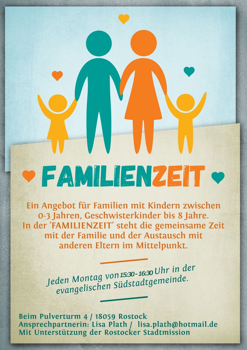 | Familienzeit | Jeden Montag Nachmittag von 15:30 - 16:30 Uhr. |