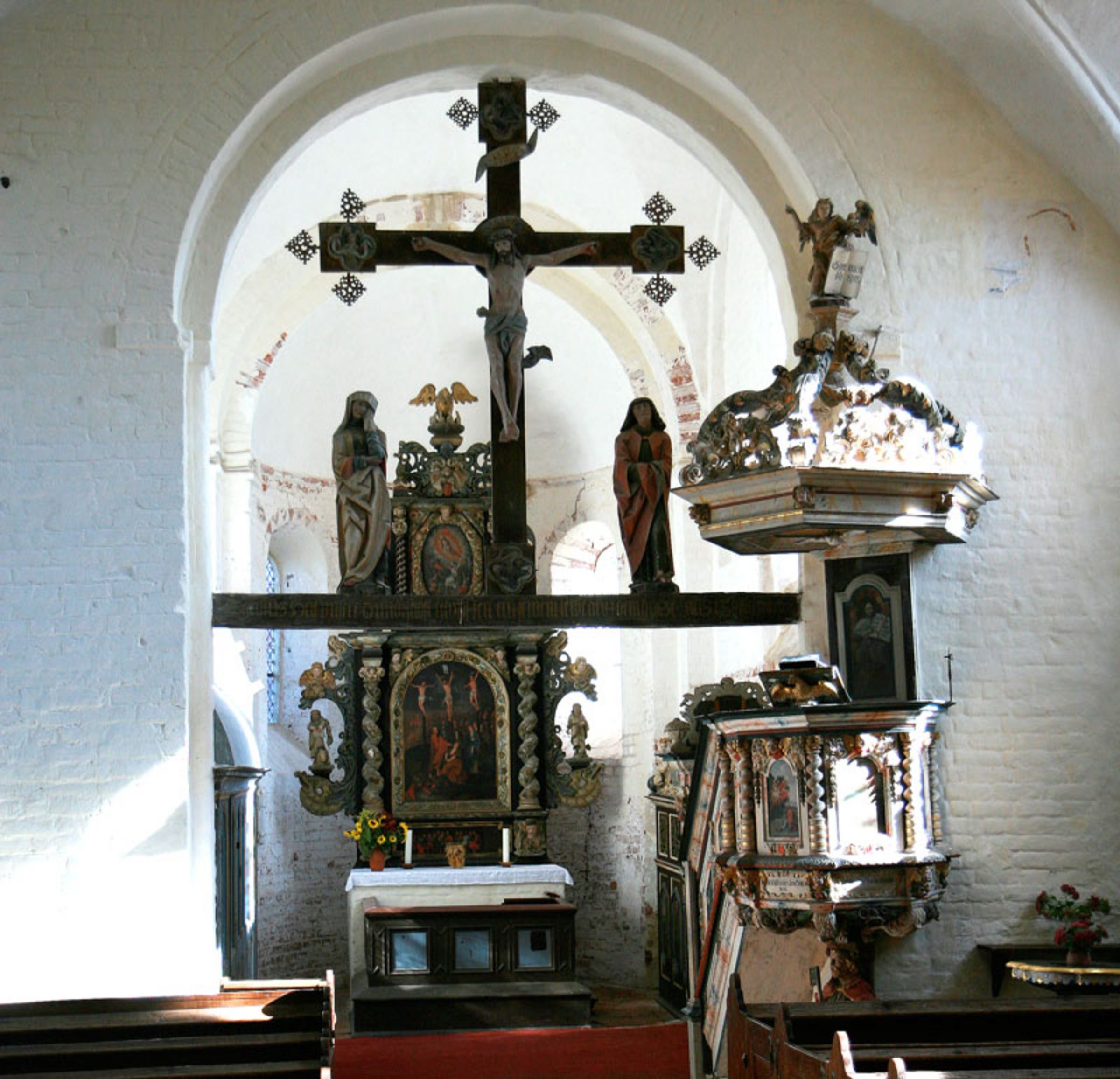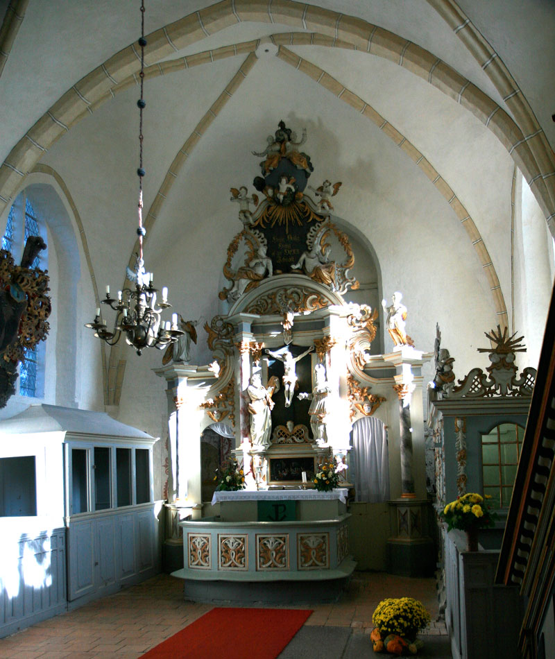 Die Kirche wurde als dreijochiger Backstienbau, die unteren Mauerteile des um 1300 begonnen Chores schachbrettartig mit Granitquadern durchsetzt. Der Altaraufsatz von 1669 zeigt eine Kopie eines Gemäldes von P.P. Rubens. Besonders hervorzuheben ist die Kalksteintaufe aus der 2. Hälfte des 13. Jahrhunderts. Die Orgel wurde 1859 von Friedrich Knauf aus Gotha errichtet.