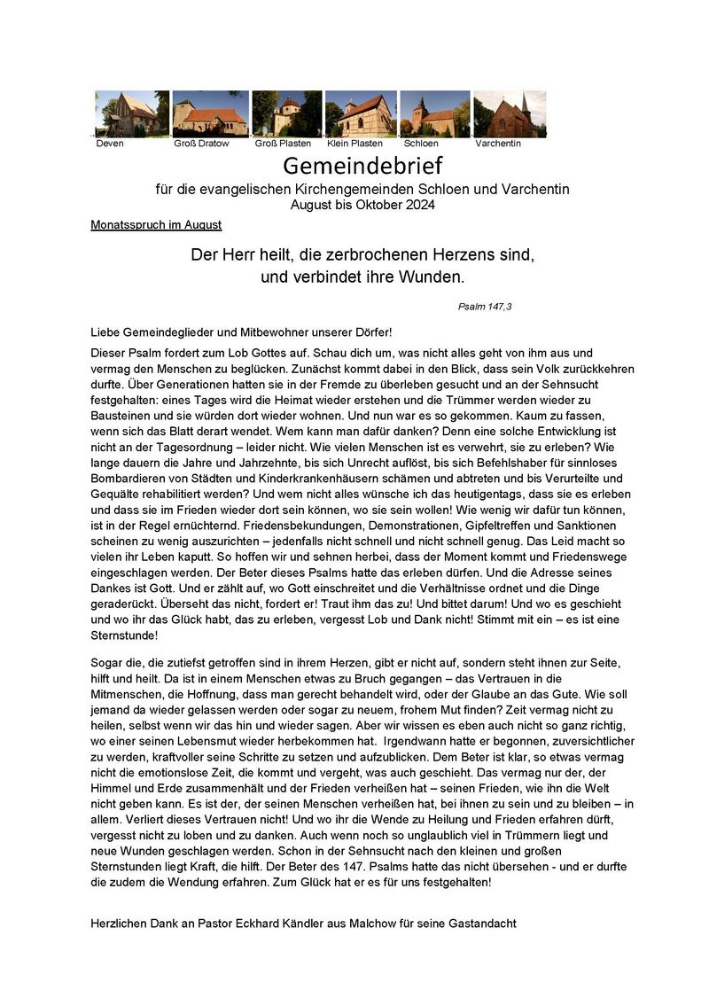 Gemeindebrief Juli bis September 2025