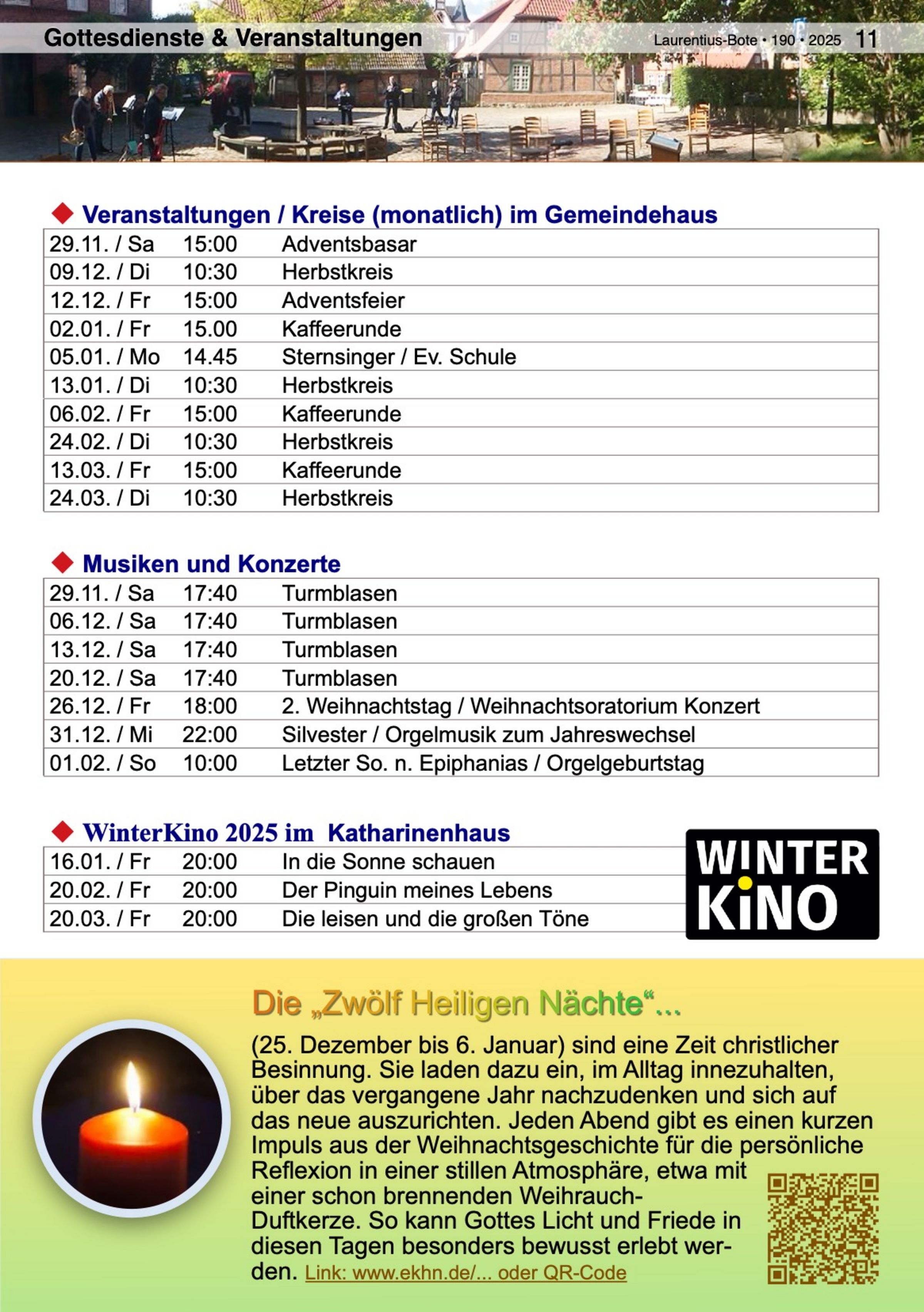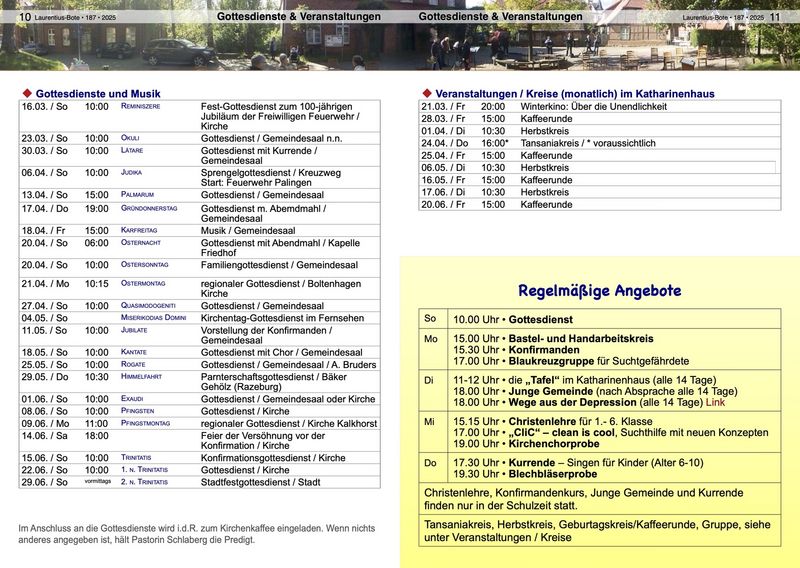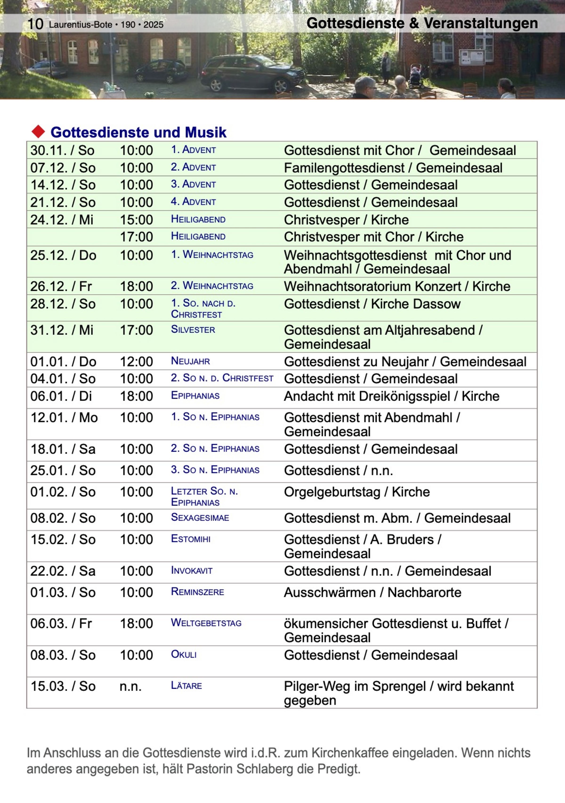 Dezember 25 bis März 26 Gottesdienste und Veranstaltungen Ergebnisse filtern Suchwort Zeitraum Die nächsten 4 Wochen Die nächsten 4 Wochen Die nächsten 6 Monate Die nächsten 12 Monate Filter 0 VeranstaltungenLeider keine Einträge vorhandenmehr anzeigen StartseiteGottesdienste und VeranstaltungenRegelmäßige AngeboteKinder- & Jugendangebote (überregional)Gemeindebriefe202520242023202220212020201920182017AngebotKirchengemeinderatKantorei & KirchenmusikKirchenwächterKurrende / KinderchorPartnergemeinde in TansaniaSchönberger MusiksommerWinterKinoWege aus der DepressionOrte & GebäudeSt. Laurentius-KircheGlockenWinzer OrgelFriedhofsverwaltungJakobsweg Via BalticaKontakte & LinksADFC Ortsgruppe NWM in SchönbergAnmelden